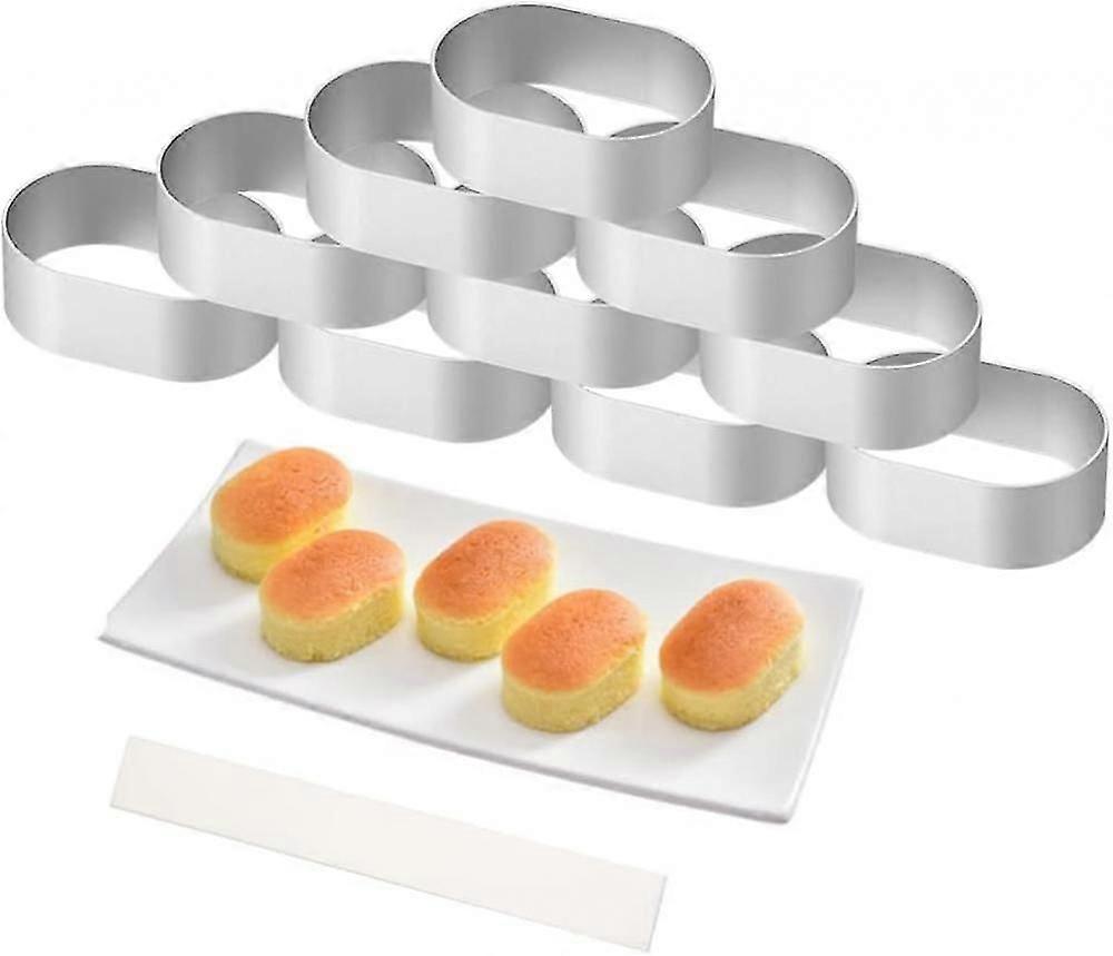 10pcs Semi-cooked Cheese Molds Aluminium Alloy Oval Cheese Cake Rings Half-Cooked Molds Oval Molds with 100pcs Cake Side Liner Papers Kitchen Baking T