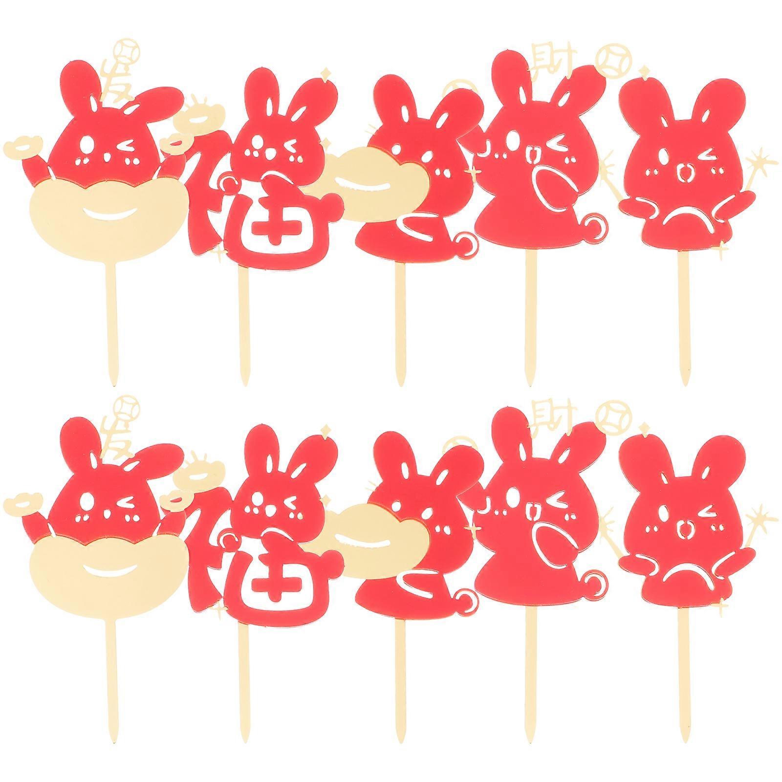 10pcs Chinese New Year Topper Rabbit Year Theme Dessert Toppers Cake Inserted Picks