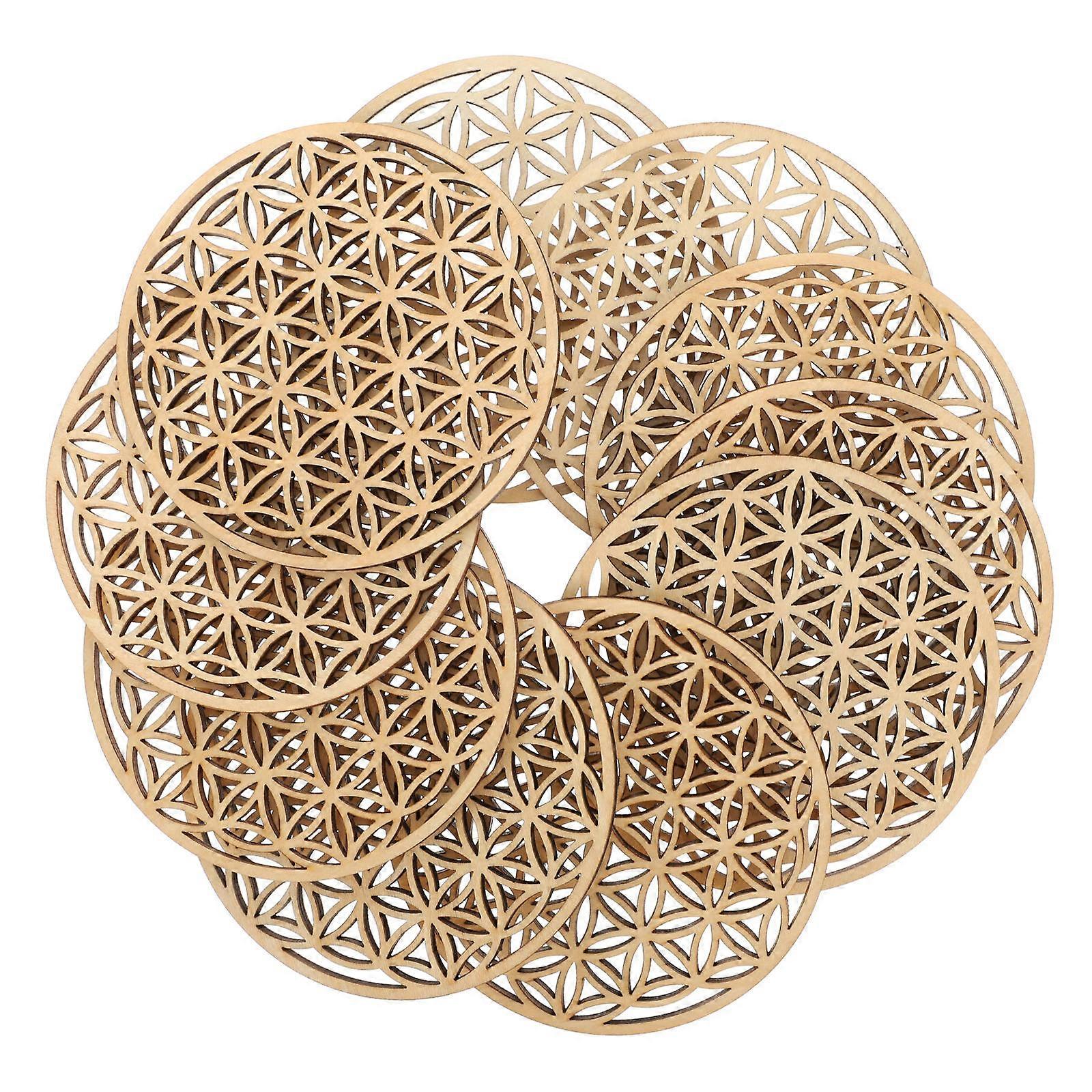 10pcs Wooden Drink Coaster Cup Carving Coaster Round Cup Mats Tableware Cushion