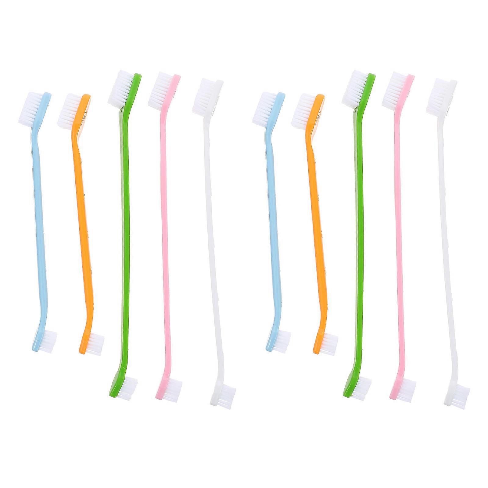 10PCS Dog Toothbrush Nylon Double Headed Oral Cleaning Brush for Puppies and Dogs Non Slip Handle, Lightweight & Comfortable Pet Dental Care Kit