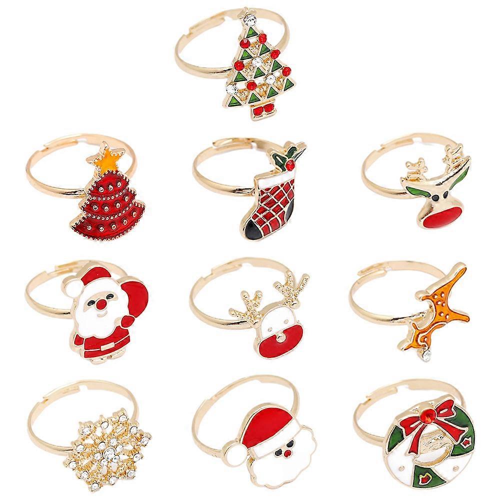 10pcs Lovely Christmas Rings Kids Finger Ring Xmas Theme Ring Decorative Rings