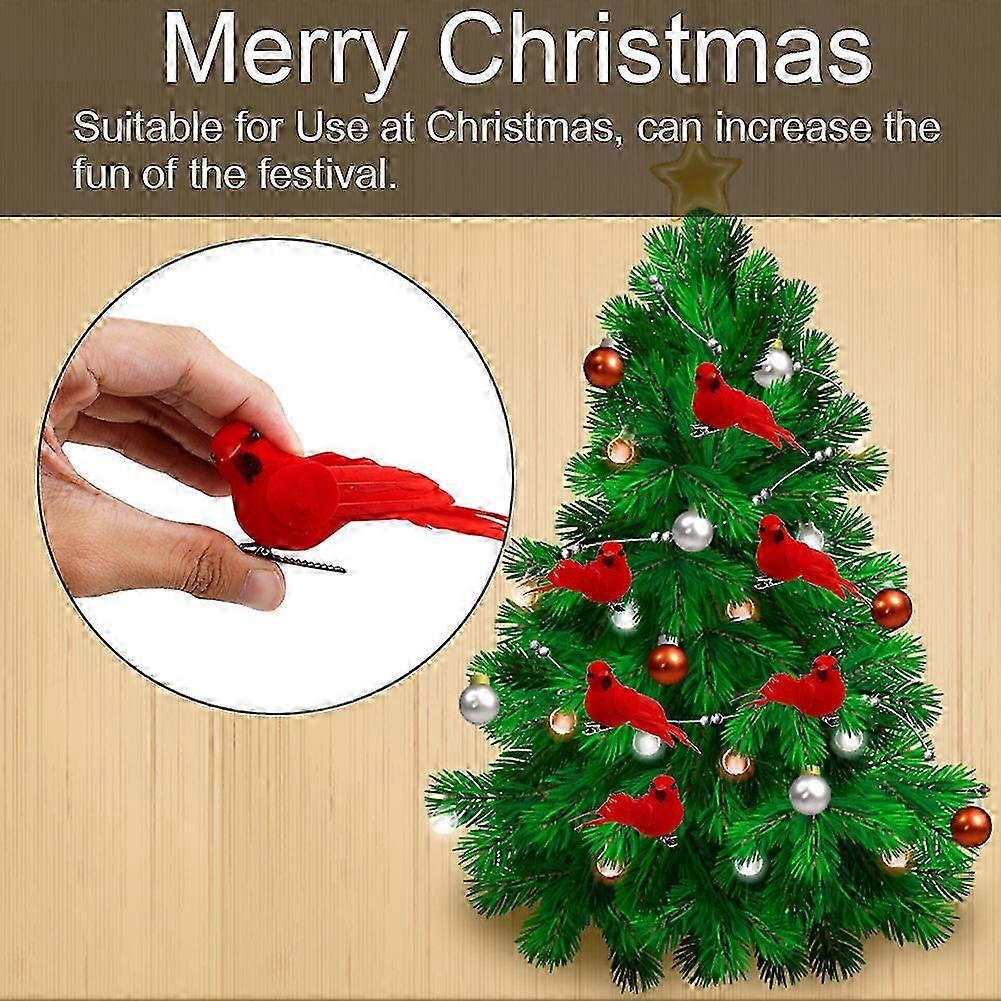 10pcs Red Clip-on Cardinals Christmas Tree Ornaments Artificial Feathered Birds Ornaments for Christmas Decorations, Arts and Crafts
