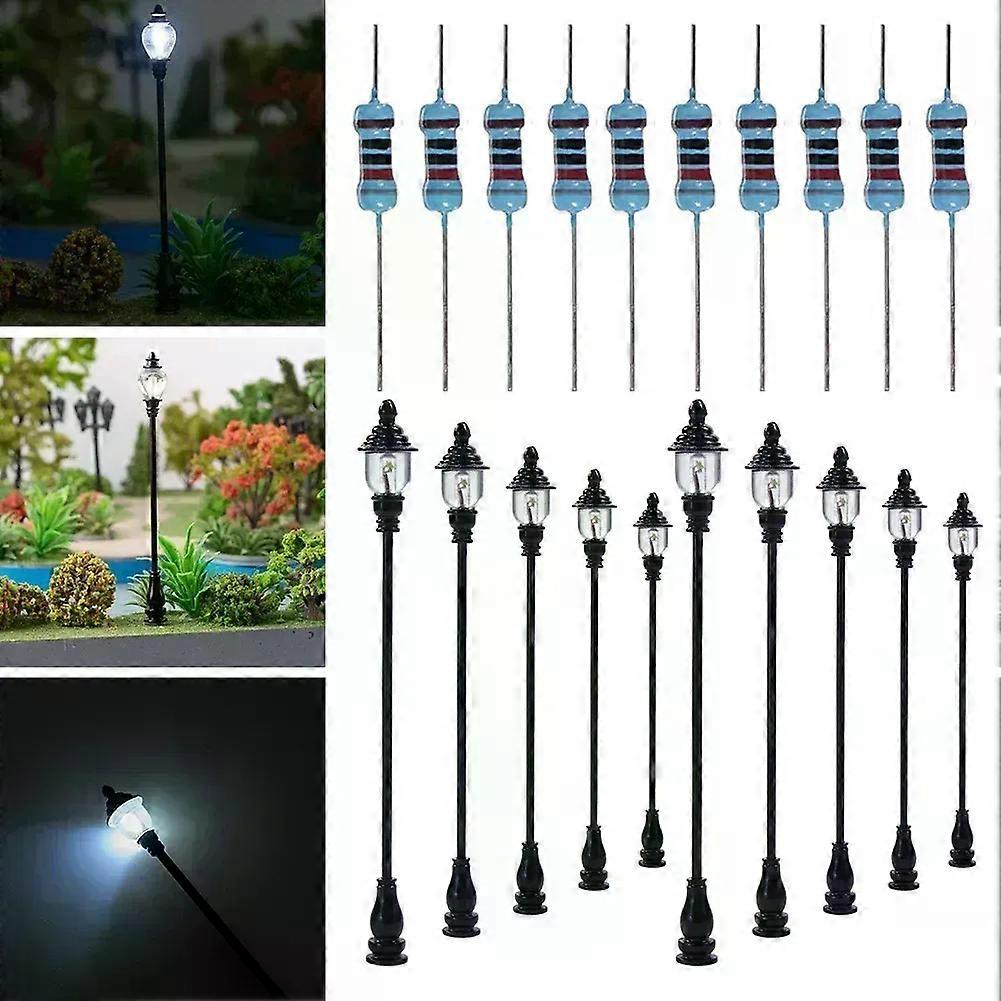 10pcs Model Railroad Train OO/HO Scale Lamp Posts Led Street Light Lamp Artificial Miniature Decoration Building Landscape