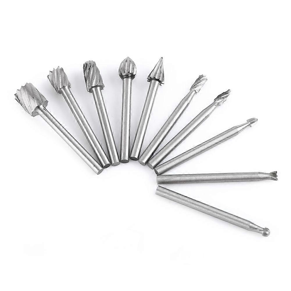 10pcs High Speed Steel Burrs Rotary Files Woodworking Carving Tool Set 1/8inch Shank