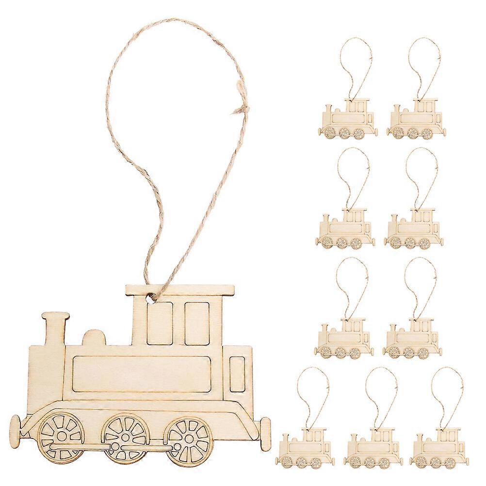 10Pcs Wooden Train Embellishments Blank Wood Train Head Pendants DIY Wooden Train Craft Slices