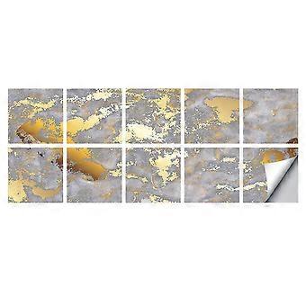 10pcs Style Golden Marble Pattern Tiles Sticker Kitchen Backsplash Oil-Proof Cupboard Waterproof Art