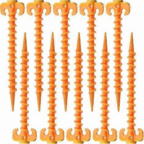 eaudac Wide range of applications Can be used to support and fix the ground connection of a tent, ideal for wet ground and many surfaces, such as lawns, beaches, soft ground, etc. Perfect Design It features a spiral curved end for easier installation in a firm grip, with sheep horn handle, more labor-saving. Durable Material Adopting quality PP plastic material and forming at one time with exquisite workmanship and durable. Easy to clean Special material, this product is rust-proof and easy to clean after use. Nice accessory for outdoor camping. Specifications: Item: Ground Nails Material: Quality PP Plastic Color: Yellow Size: 20cm * 4.5cm Weight: 19g / root Package Included: 10 * Ground Nails