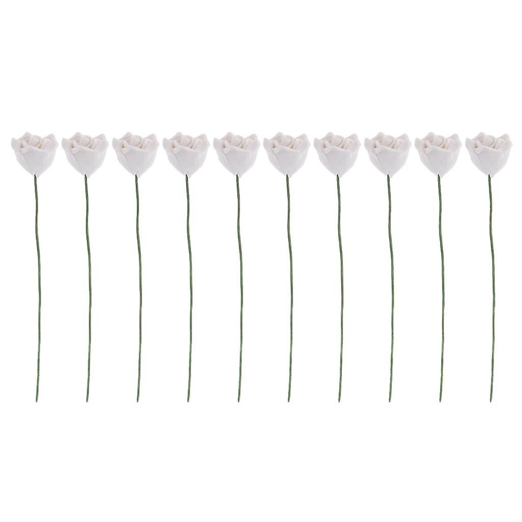10pcs 1/12 Dollhouse Miniature Clay Rose Flower Bouquet Garden Decor White