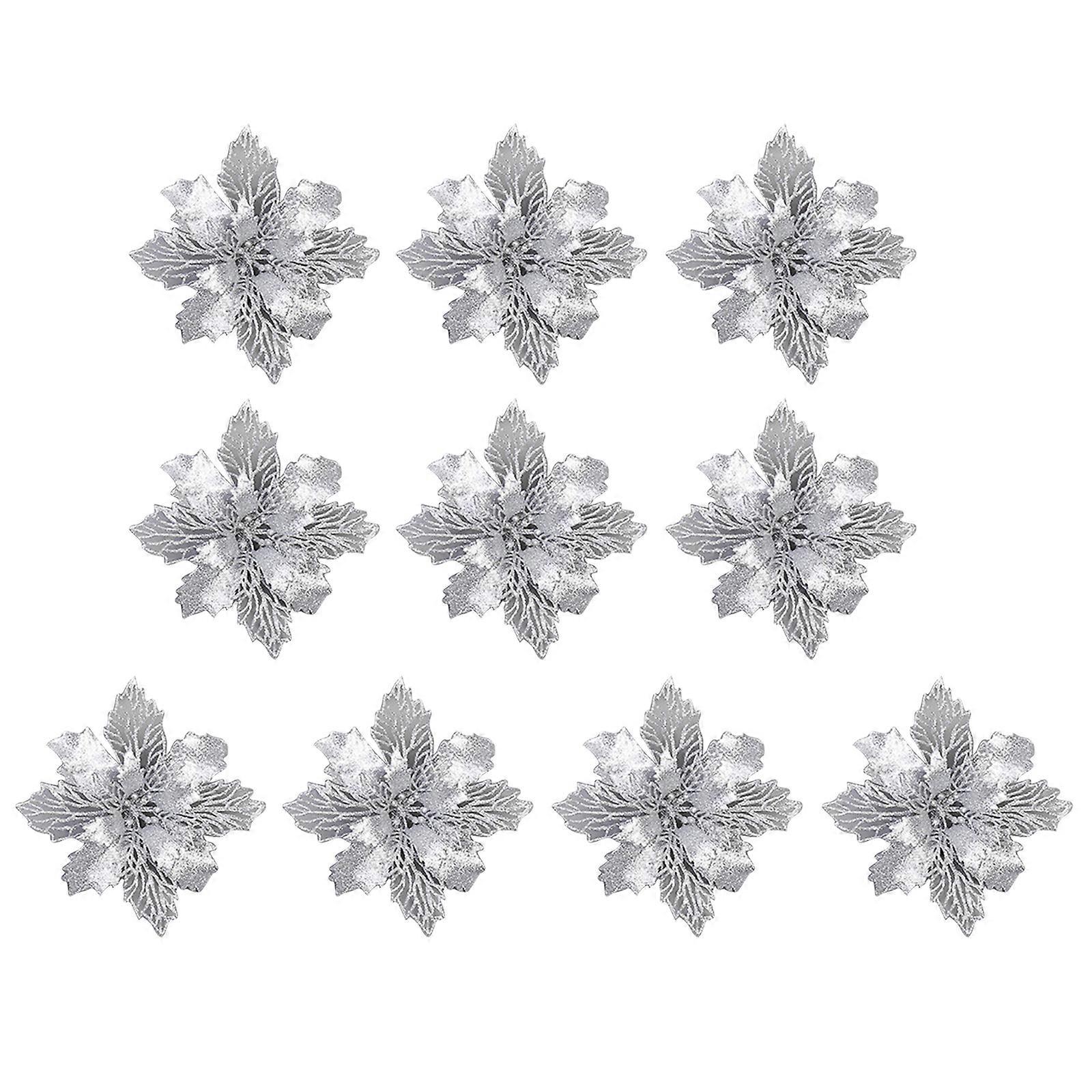 10pcs 11cm Big Artificial Glitter Flower Christmas Tree Pendants Ornament DIY Silver