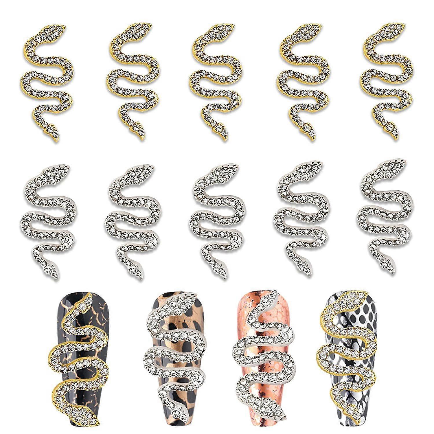 10pcs 3D Snake Nail Charms Set, Snake Wave Jewelry Gems Nail Art Accessories for Acrylic Nails, Rhinestones