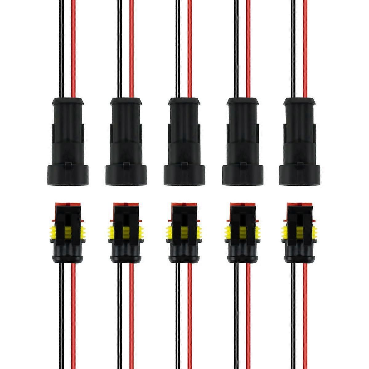 10pcs 5 Pairs Male Female Electrical Connectors 2Pin Way with Wire for Car Motorcycle Scooter Marine