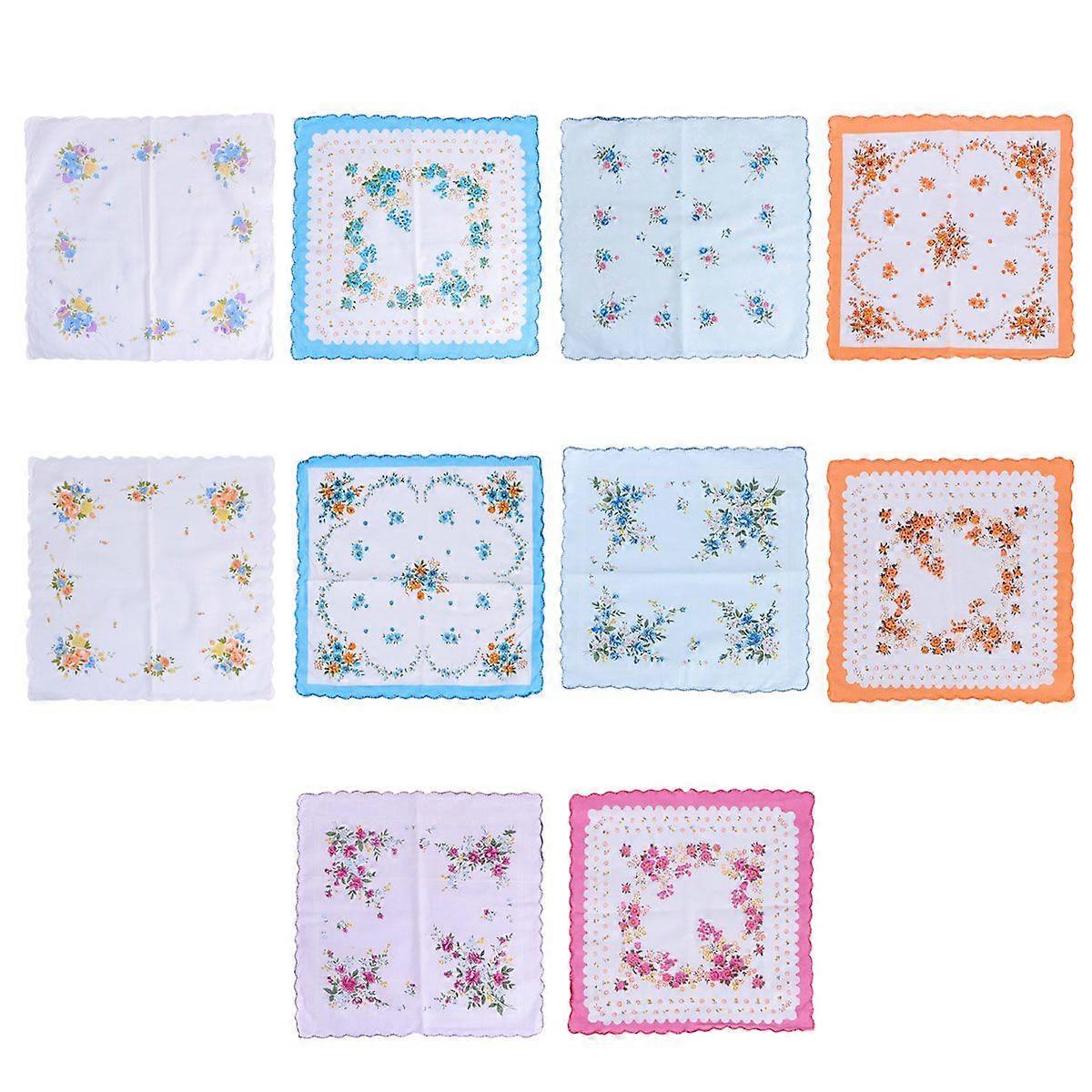 10pcs Small Handkerchief Cotton Printing Cleaning Handkerchief Flower Printing Handkerchief for Home (Random Flower Pattern)