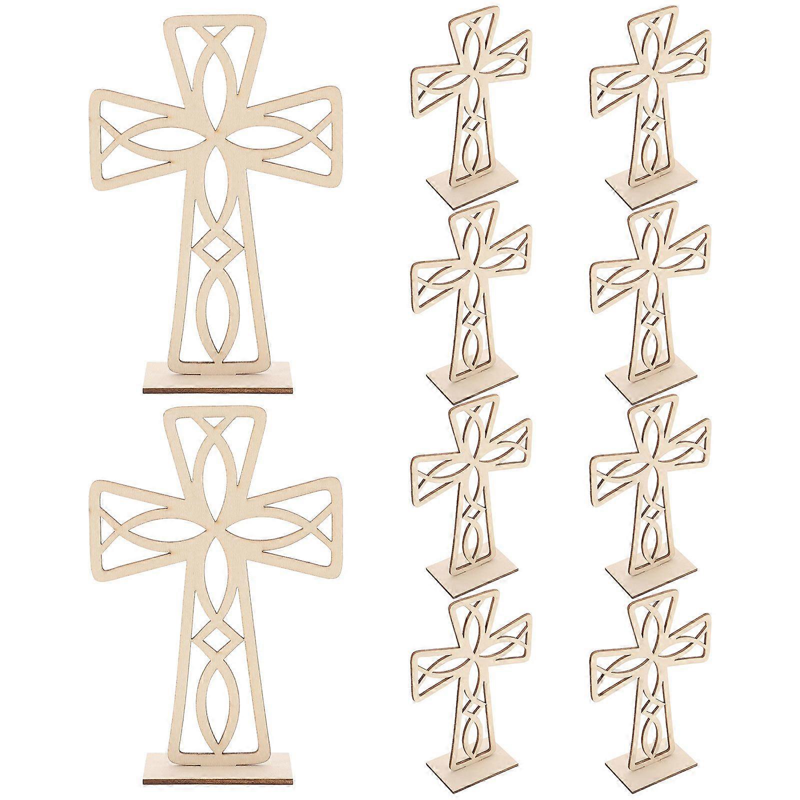 10pcs Wooden Cross Ornament Wood Cross Craft Decoration Tabletop Crafting Cross Decoration