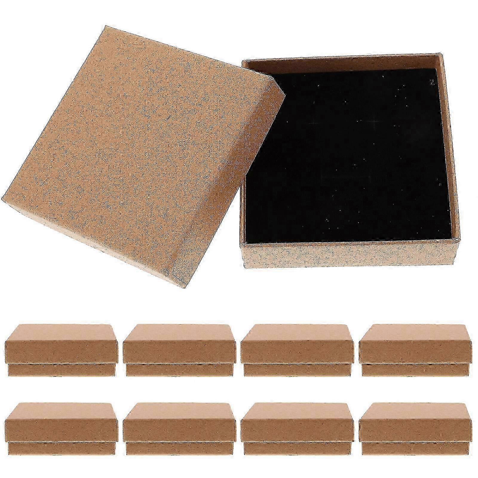 10pcs Vintage Kraft Jewelry Boxes 9x9x3cm Brown Gift Packaging