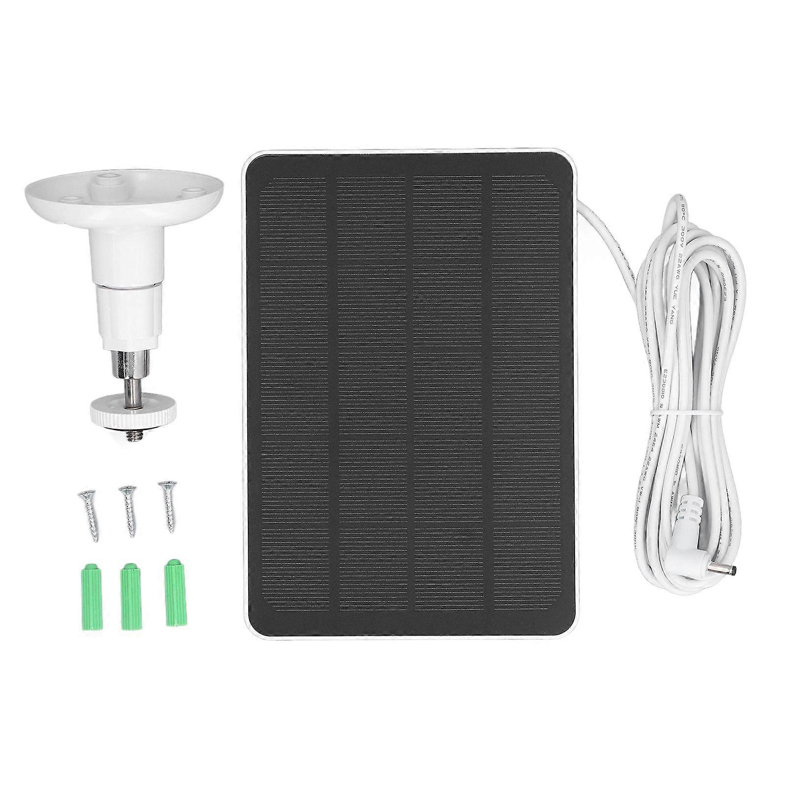 Feature:1. COMPATIBILITY The solar panel is compatible with the for Ring Spotlight Camera Battery and Stick Up Cam Battery (2nd and 3rd generations). The solar panel is not compatible with a for Ring camera without batteries, and if your camera has a USB C port, you will need to purchase a barrel plug for a USB C battery camera that is compatible with a USB C adapter.2. SAFE AND EFFICIENT: Made of premium fireproof structure, safe charging with over current, overheat, over voltage and short circuit guard. Maximum charging output is 6V 10W, providing continuous and fast power for your surveillance camera, more widely used than other solar panels, no need to charge your surveillance camera frequently.3. IP65 WATERPROOF DESIGN: The solar panel is IP65 weatherproof, which can resist heavy snow, heavy rain and other harsh weather conditions. Working conditions are 32F122C (0C to 50C). Can be installed anywhere outdoors to provide solar power for your wireless security camera.4. PREMIUM MATERIAL: The solar panel is made of high efficiency monocrystalline silicon and lightweight ABS material, which has a high light transmittance and greatly improves the conversion efficiency. The shell is made of anti aging material, which will not rust or deform.5. SIMPLE INSTALLATION: Simply screw the solar panel into place under direct sunlight, connect the power cord to an electrical outlet, and plug the cable connector into the surveillance camera. The unique 360 degree rotatable bracket and 9.8ft (3meters) cable gives you the flexibility to maximize sunlight. Perfect for mounting on eaves, facades, stumps, etc.Specification:Item Type: 10W Solar Panel ChargerMaterial: ABS, Monocrystalline SiliconPower: 10WOperating Voltage: 5VOpen Circuit Voltage: 6VOutput Current: 800mA MaximumCharging Cable Length: Approx. 3m/9.8ft Charging Interface: DC3.5x1.35Compatible Doorbell: for Ring Spotlight Camera Battery, for Stick Up Cam Battery (2nd and 3rd Generations).Package List:1 x Solar Panel1 x Base3 x Screw 3 x Expansion TubeNote:Manual measurement please allow some error.