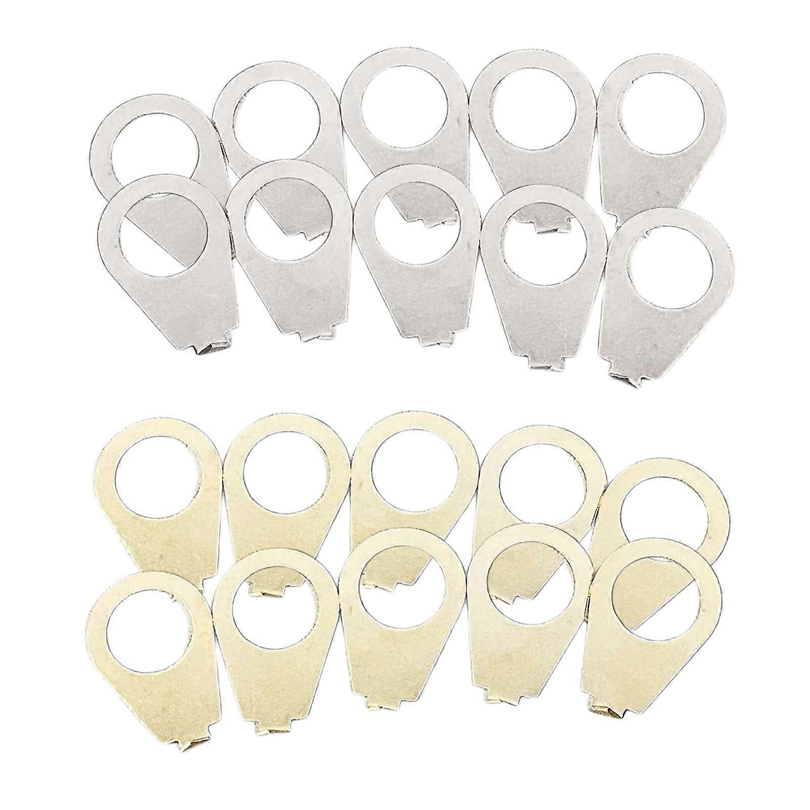Description: Package: 10pcs Electric Guitar Knobs Pointer Plate Knob Indicators. Features: Easy to install and convenient to use. Material: Made of high quality metal, durable and sturdy. Type: Well made guitar knobs pointer plate knob position indicator, suitable for guitar bass replacement. Note: Please be sure to verify the size carefully before purchasing. Specification: Material: Metal Size Chart: 2.1cmx1.4cmx0.5cm/0.83inchx0.205inchx0.5inch Package Includes: 20 Pieces Guitar Knobs Pointer Plate Note: Please allow slightly errors due to manual measurement and different monitors.