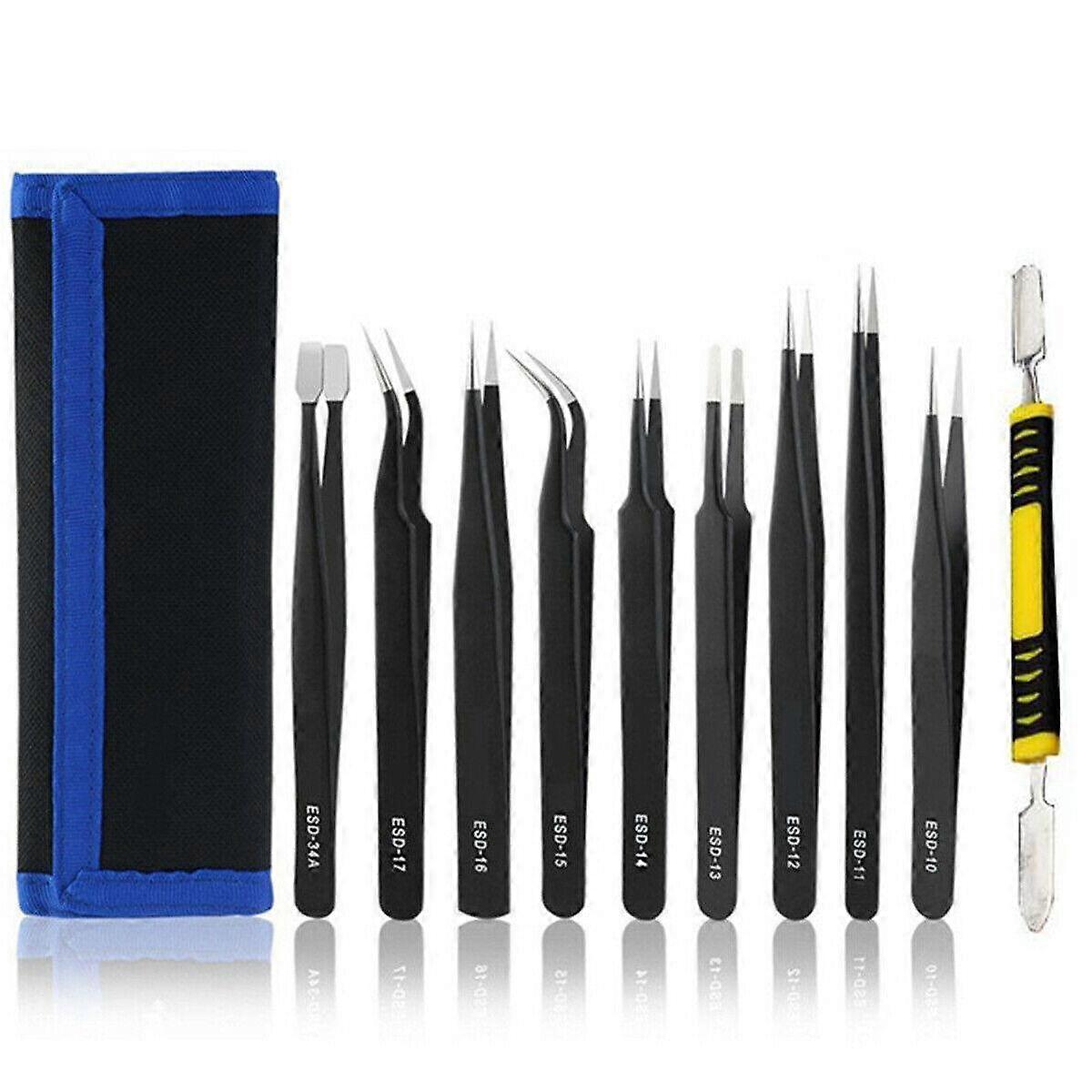 10x Tweezers Set Stainless Steel ESD10-17 Pointed Tweezers Model Making Curved AnatomicalW