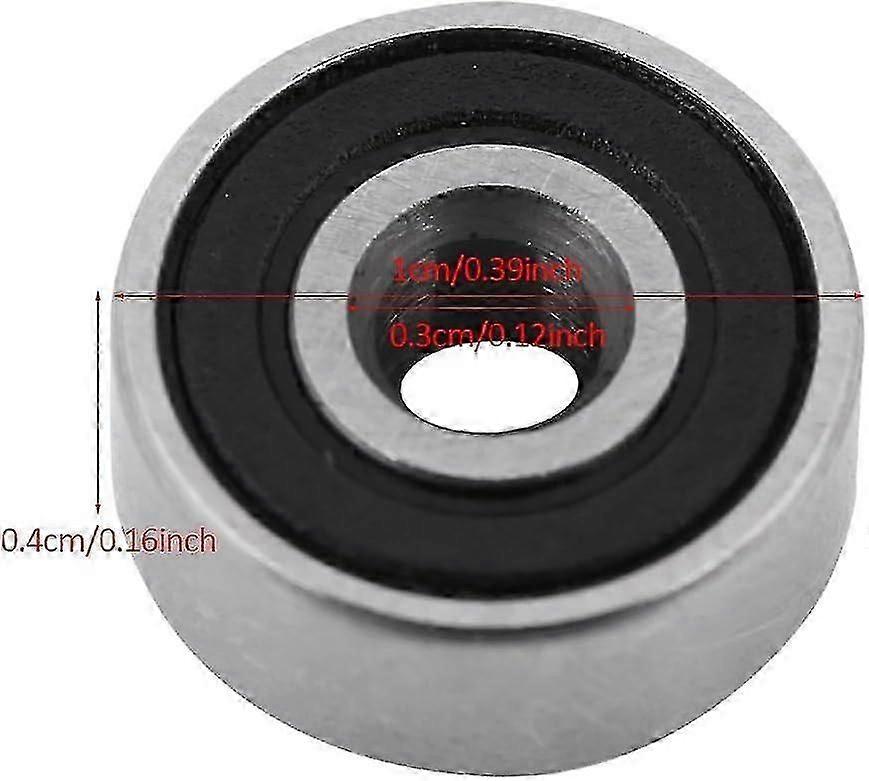HIGH QUALITY: These mini bearings are made of high quality steel for low noise and long life. DOUBLE SHIELDED DESIGN: They are double rubber sealed to prevent entry of contaminants and save lubricant. < br> SIZE: Bearings are 3mm inner diameter, 10mm outer diameter, and 4mm thickness. WIDE APPLICATION: They are great for 3mm shaft / rod projects such as mechanical equipment , electric instruments, toys. EFFECTIVE COST: There are a total of 10 pieces of miniature bearings that you can use for many different projects. Features: ISO Certificate --- ISO 9001: 2008 Dimension: Inside diameter: 3mm OD (outside diameter): 10mm < br> thickness: 4mm Quantity --- 10 PCS Tolerance codes ABEC --- ABEC 1 Closing codes --- 2RS (rubber seals on both sides) Lubrication --- Wide temperature range: - 20 to 120 Basic loads: Cr KN = 0.64 Cor KN = 0.23 Vibration level --- Z1 (P0) The package includes: 10 x bearings