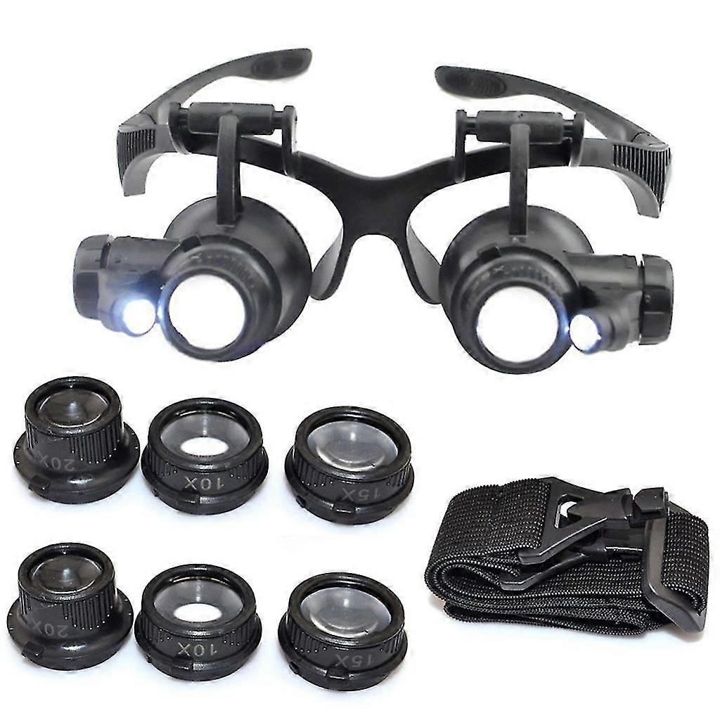 10X 15X 20X 25X LED Double Eye Jeweler Repair Watch Magnifier Loupe Glasses Lens
