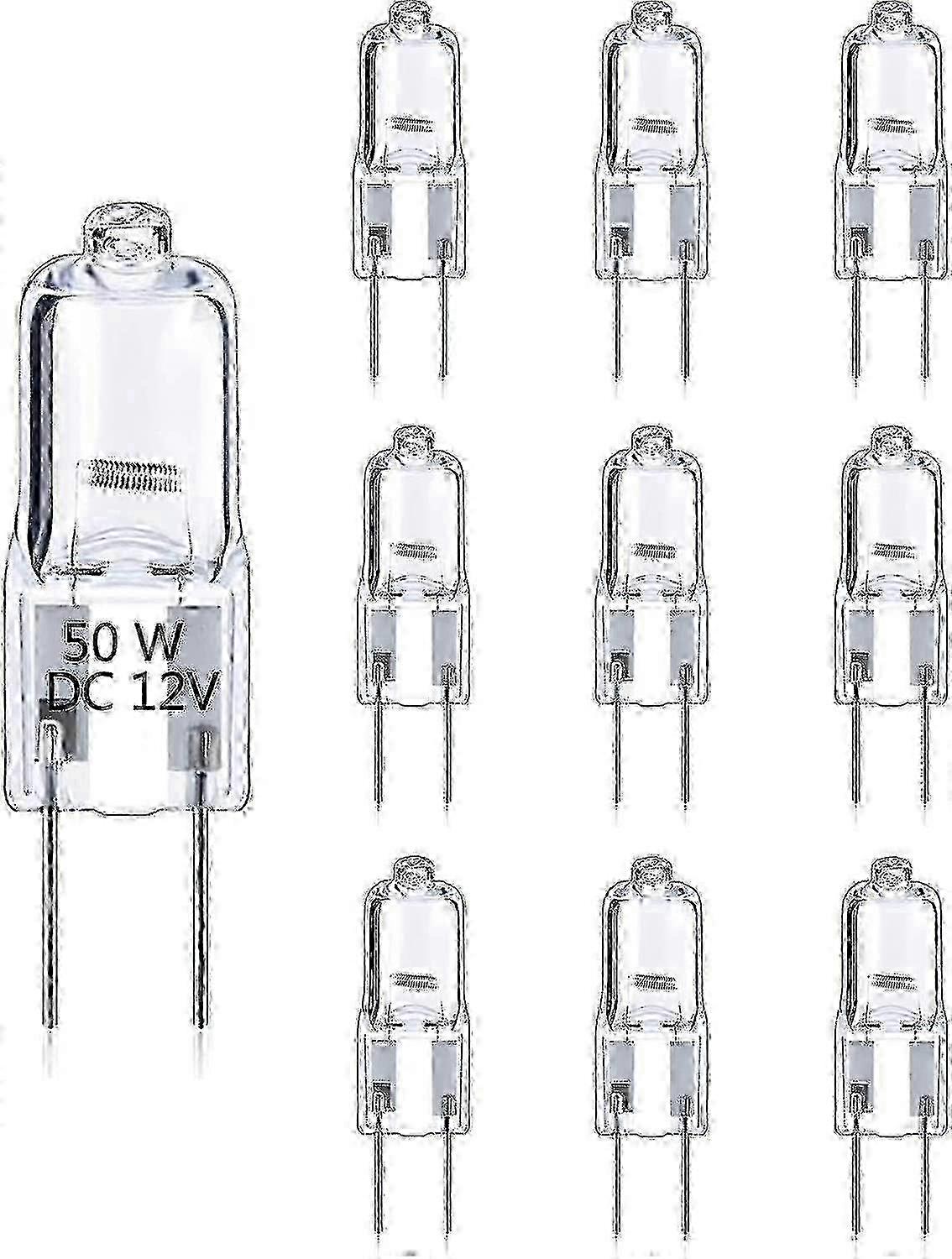 10x Dc 12v Halogen Bulbs G6.35 50w Dimmable Warm White 2700k 2 Pin Clear Capsule Light Bulb For Chandelier, Desk Dimmable: G6.35/GY6.35 halogen bulbs are dimmable, fully dimmable, compatible with halogen dimmers. Please do not use it in led dimmer, halogen lamps are not compatible with led dimmers, it will cause flickering and even not work. Low Voltage AC/DC 12V: This is a low voltage AC/DC 12V GY6.35 bulb / G6.35. Be sure to use an appropriate transformer. Please do not use the LED transformer to connect these bulbs. Lifespan: 2000 hours lifespan, instant on. No buzzing or buzzing. Small Volume: Innovative and unique closure technology for glass envelope, firm filament design. Environmentally friendly, lead and mercury free, no UV or IR radiation. UV insulation prevents lighted objects from fading. Wide Application: The halogen bulb can be used for indoors, ceiling lights, stoves, RVs, boats and caravans, for pendant lights, chandeliers, desk lamps, accent lamps, sconce lighting. Note: Due to the light and screen setting difference, the item's color may be slightly different from the pictures. Please allow slight dimension difference due to different manual measurement.