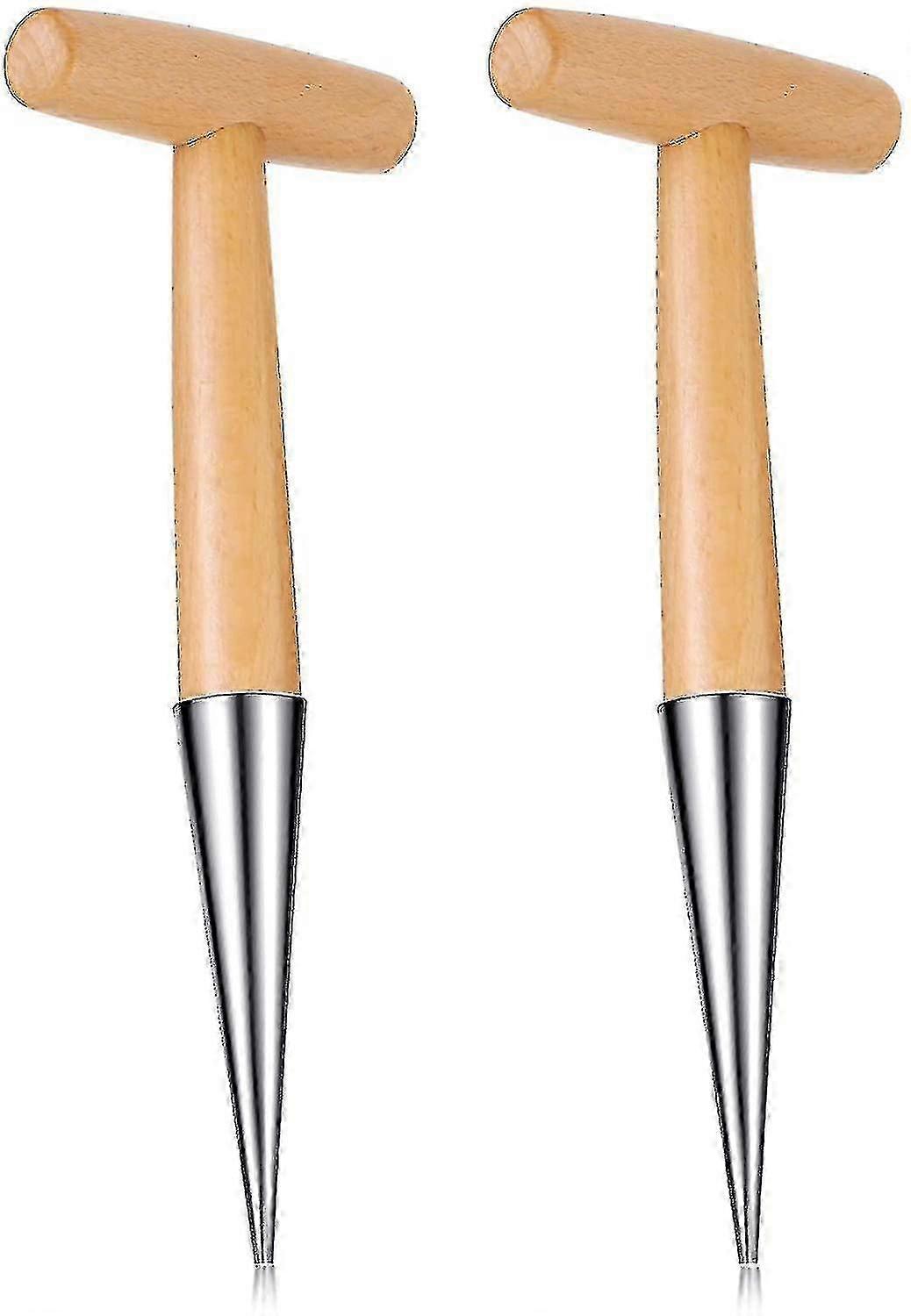 11 Inch Stainless Steel Garden Dibber, 2pcs Wooden Bulb Planter
