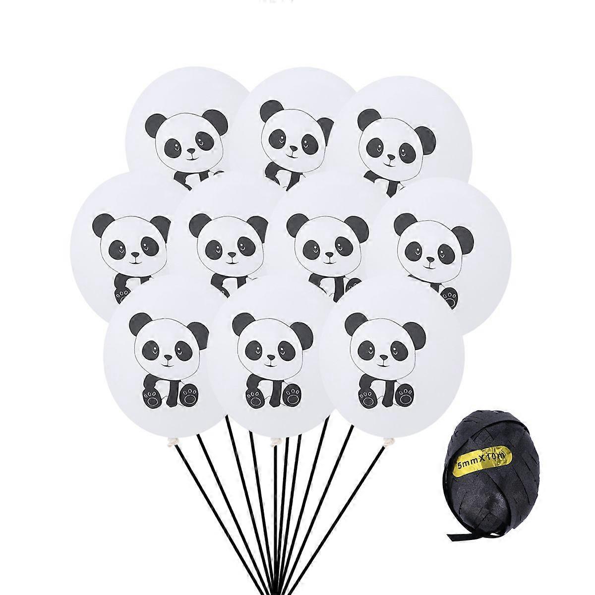 11pcs/Set 12inch Panda Printed Latex Balloons Cartoon Balloons Home Decor for Party Birthday (10 Panda Balloons+Black Ribbon)