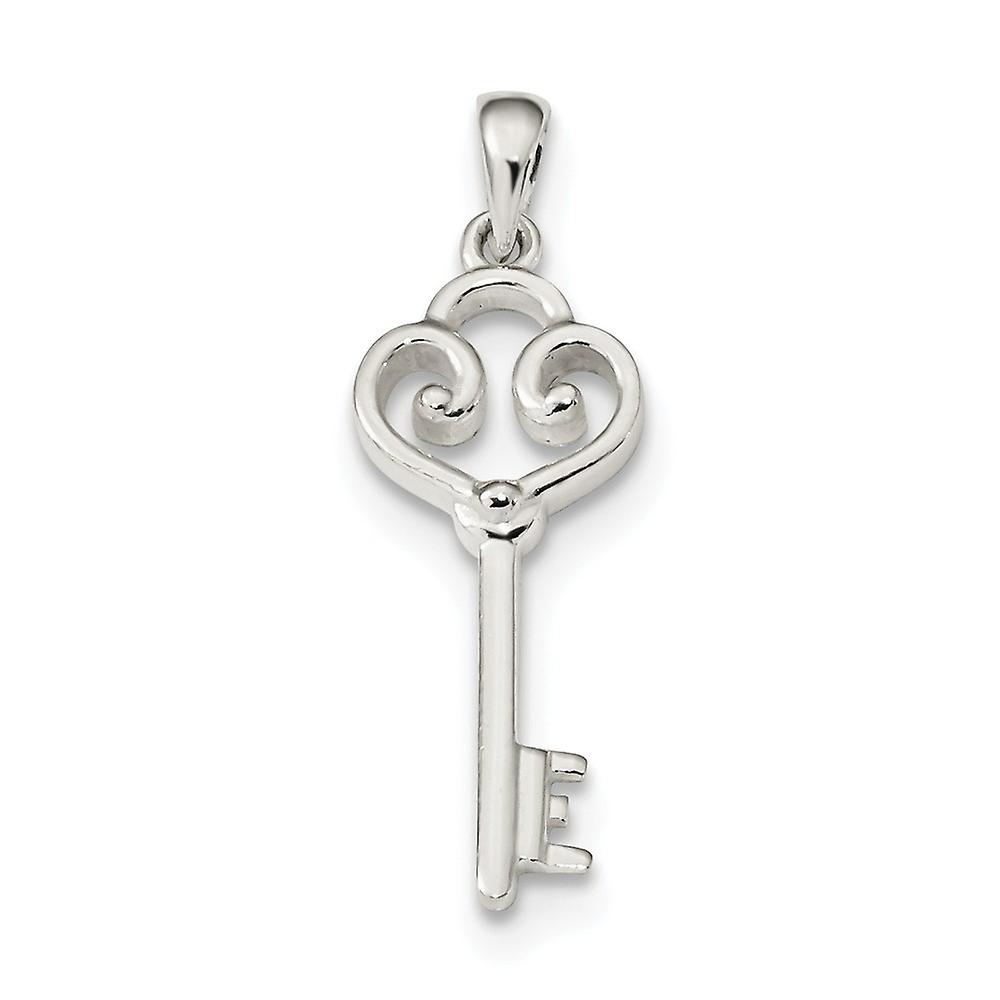 11mm 925 Sterling Silver Polished Love Heart Key Pendant Necklace-Pendant for Women - 1.6 Grams