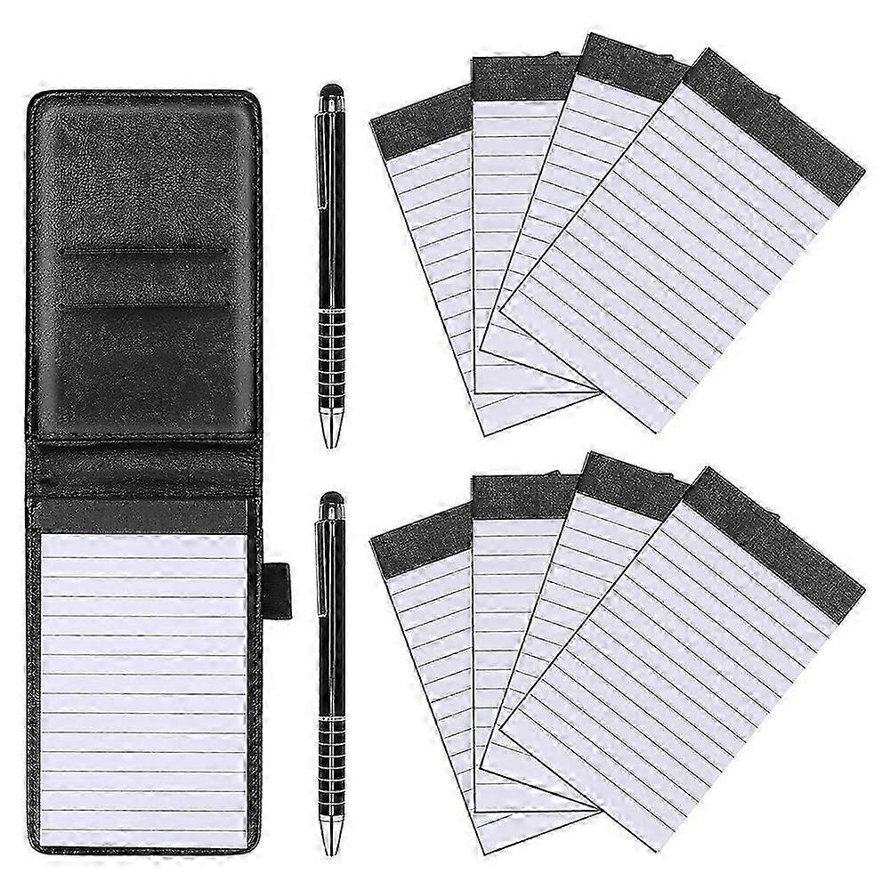 11 Pcs Mini Pocket Notepad Holder PU Leather Business Notebook with 2 Metal Pens and 8 Refills