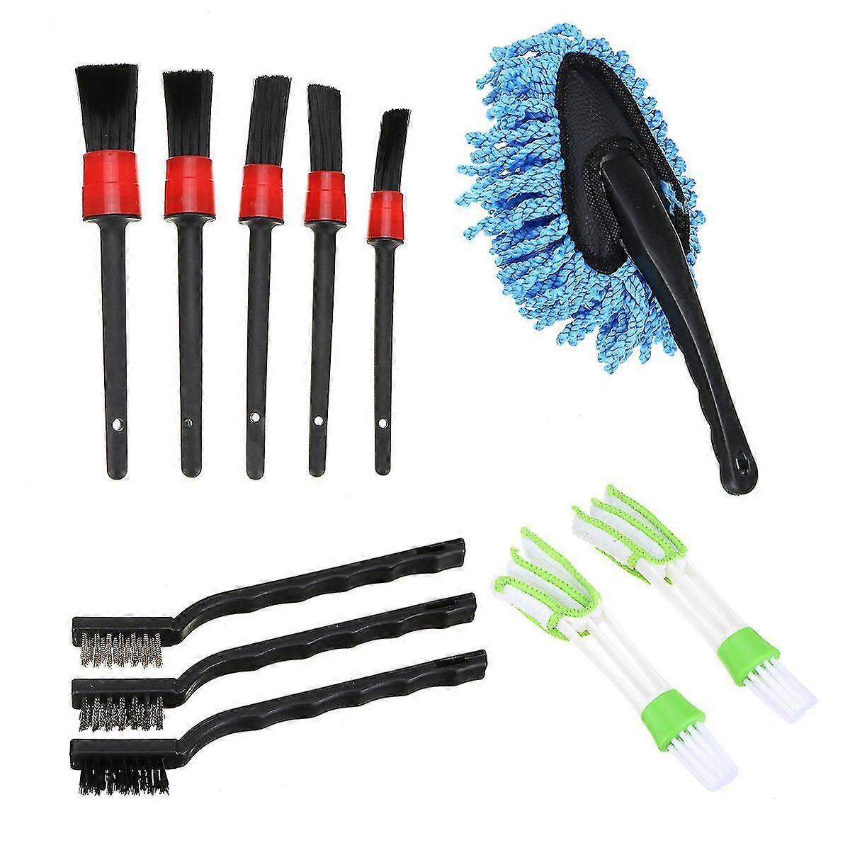 11Pcs Cleaning Detailing Brush Set Dirt Dust Clean Brush Interior Exterior Leather Air Vents Care Clean Tools For Car Motorcycle Air Vents