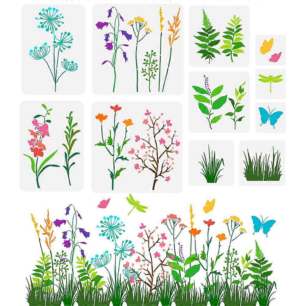 11Pcs 11 Styles Plant Theme PET Hollow Out Drawing Painting Stencils for DIY Scrapbook Photo Album Mixed Shapes 100~300x100~300mm 1pc/style