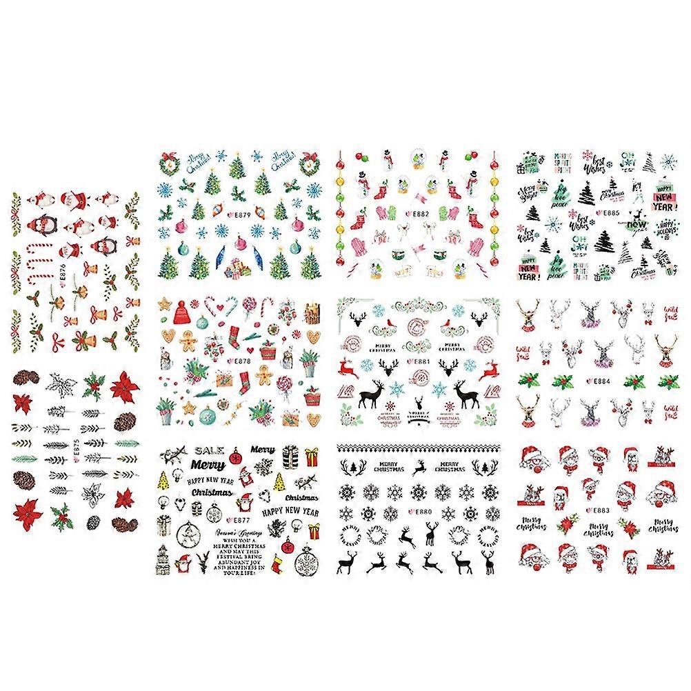 11 Sheets 3D Nail Stickers Water Transfer Stickers Elk Snowflake Nail Art Manicure Stickers