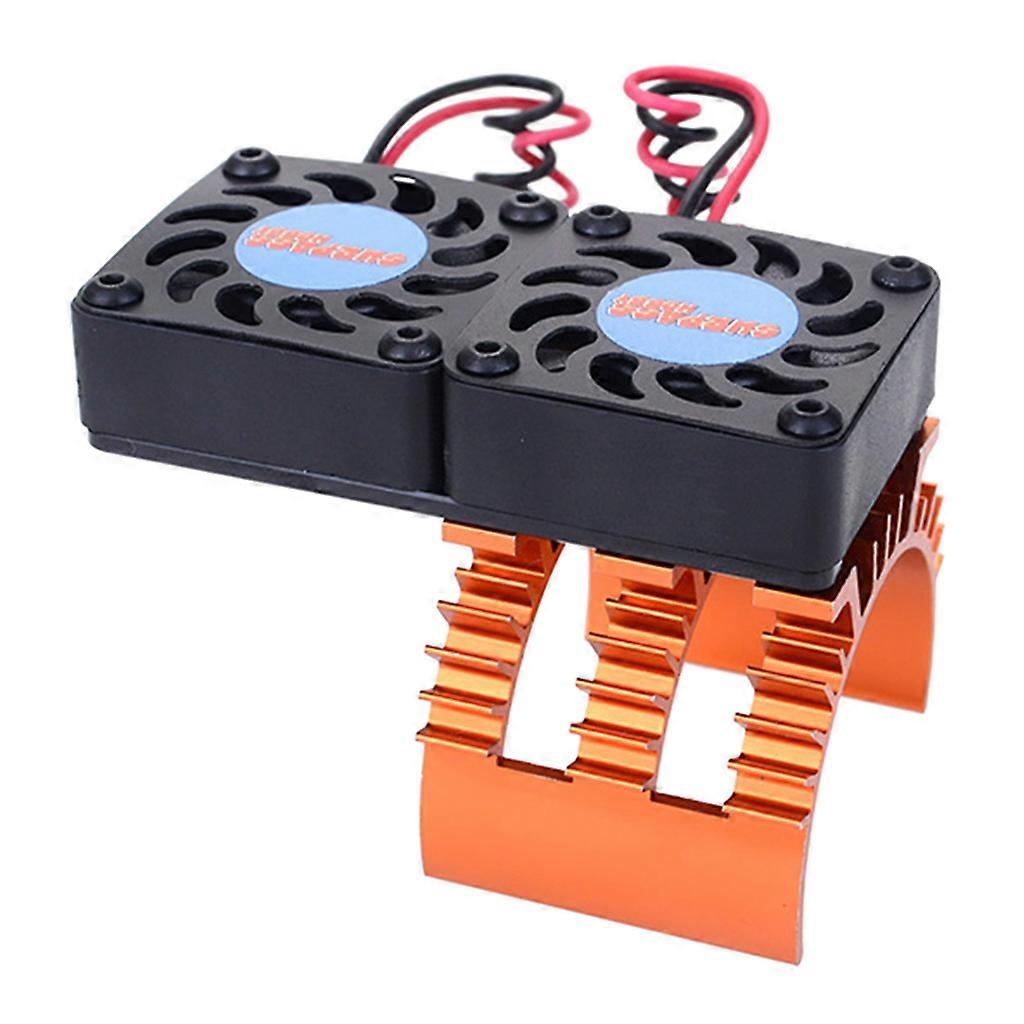 Aluminum Alloy RC Motor Heatsink with Double Cooling Fans for 1/10 Car 540 550 3650 Durable Upgrades Replacement Parts Orange