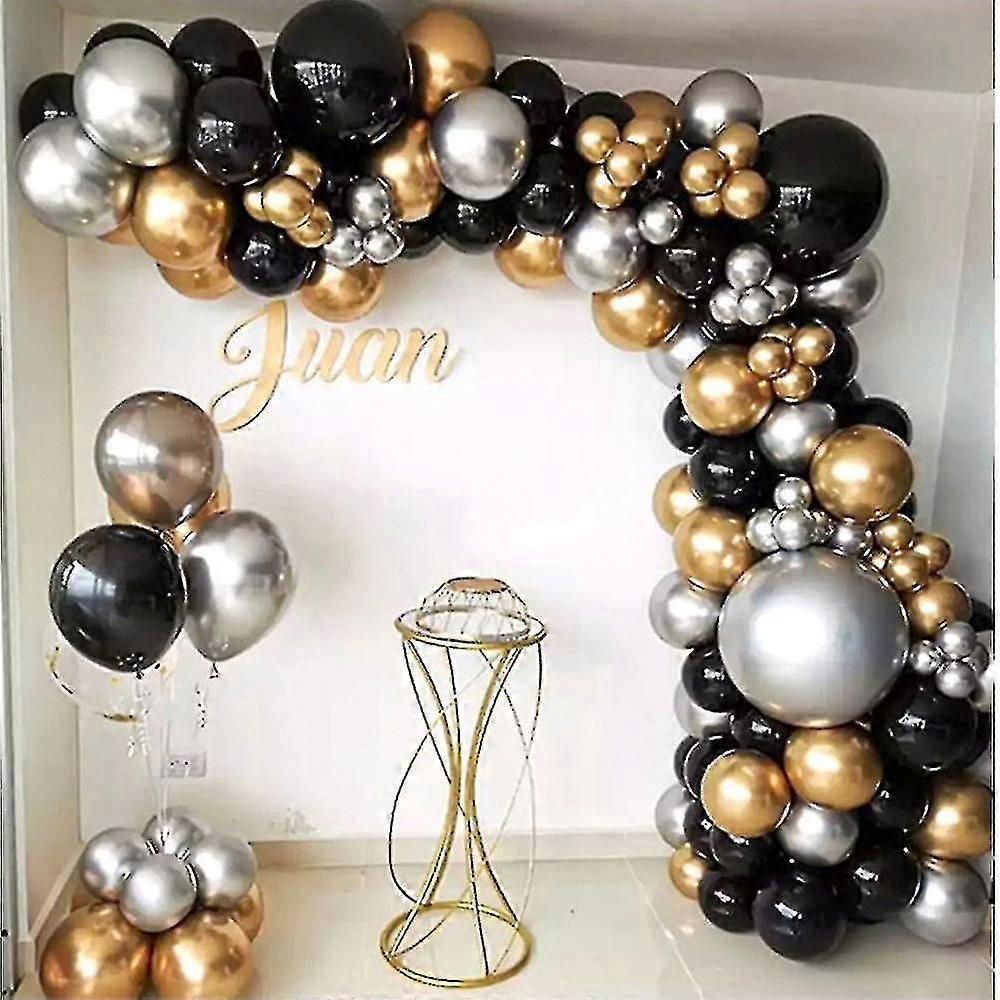 110 Pcs Gold Black Balloons Party Silver Balloon Sets Wedding Birthday Decorations
