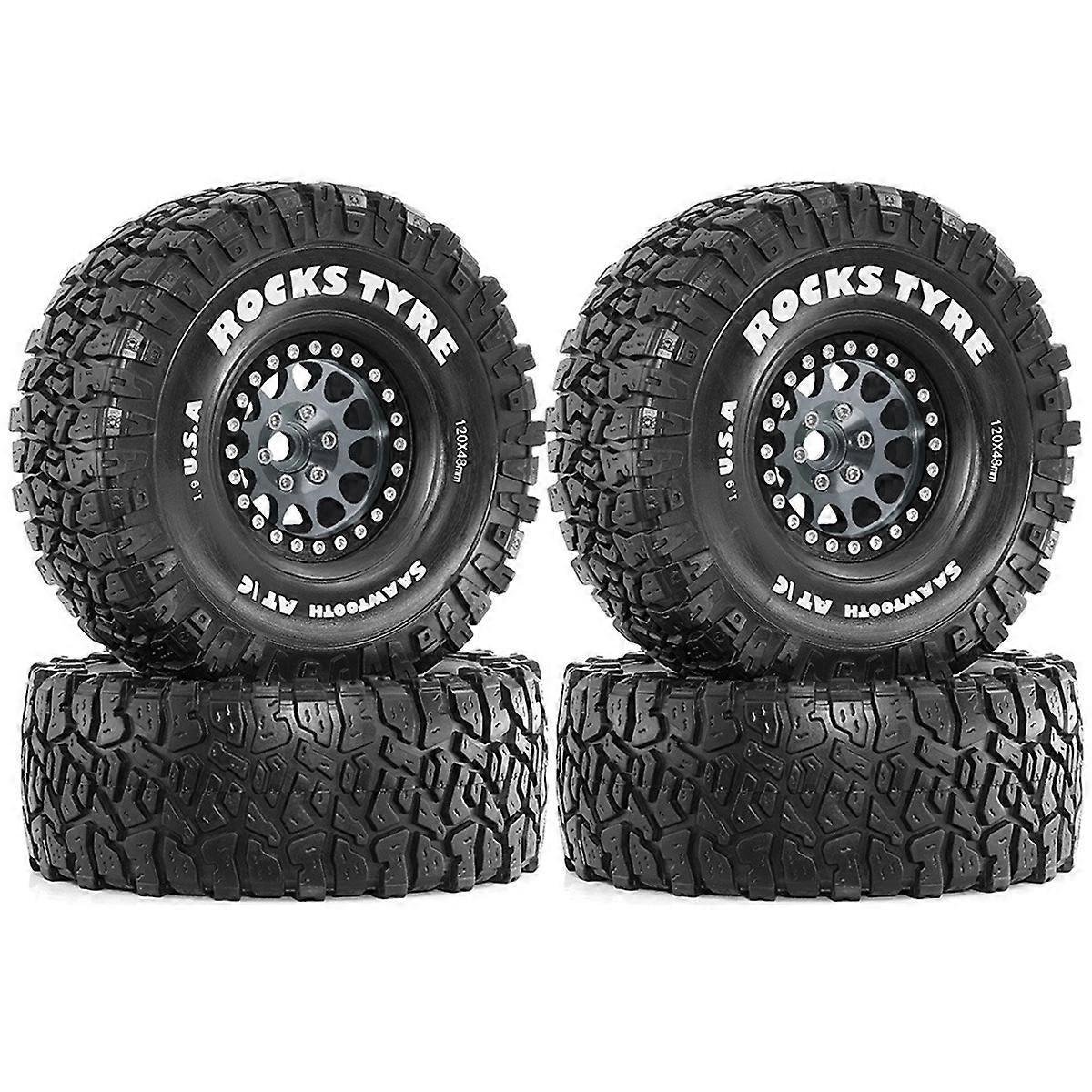 4pcs 120mm 1.9Inch Beadlock Wheel Rim Rubber Tire Set for 1/10 RC Crawler Car Axial SCX10 Pro Capra TRX4 D90 Grey
