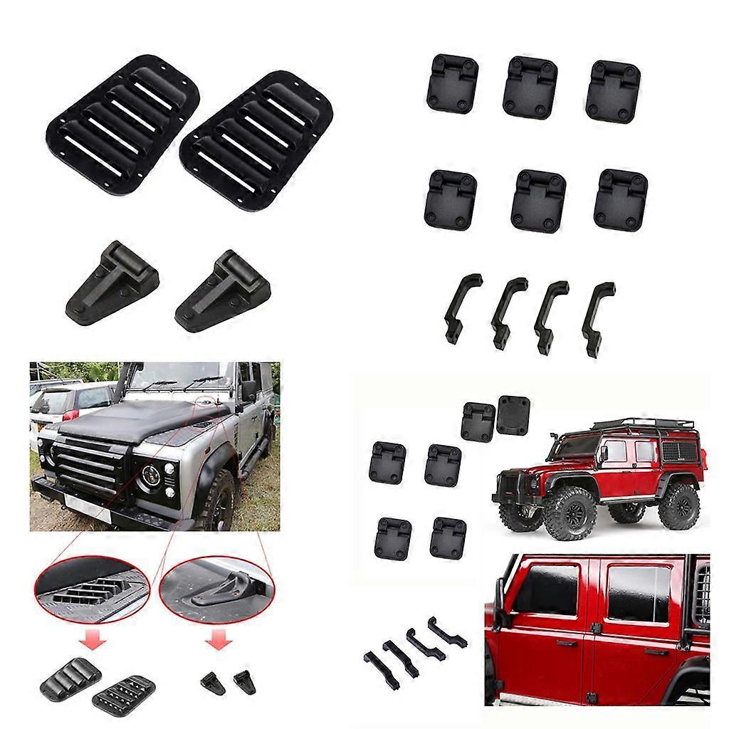 Description: 100% Brand new and high quality. Fine workmanship, makes you car more attractive and realistic. Available for -4 4 Rover 1/10 RC Rock Crawler. Increase the authenticity of your RC car,make your RC car more cool and attractive. RC Car Model Exterior Door Handles & Hinges + Intake Grille Cover & Engine Cover Hinge. Specification: Material: Plastic Color: Black Size Chart: Exterior Door Handles & Hinges Size: Approx. 12 x 14mm/0.47 x 0.55inch Intake Grille Cover & Engine Cover Hinge Size: Approx. 10 x 12mm/0.39 x 0.47inch Package Includes: 4 Pieces Exterior Door Handles 6 Pieces Door Hinges 2 Pieces RC Car Intake Grille Cover 2 Pieces RC Car Engine Cover Hinge Note: Due to manual measurement, there may be 1-2mm error in size