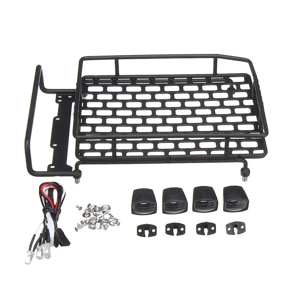 Luggage Roof Rack with 4 LED Light Bar for 1:10th RC Vehicles Rock Crawler Rally~4934
