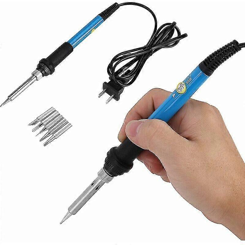 110V 60W Electric Soldering Iron Kit, 5 Piece Adjustable Temperature, Replaceable Iron Tips