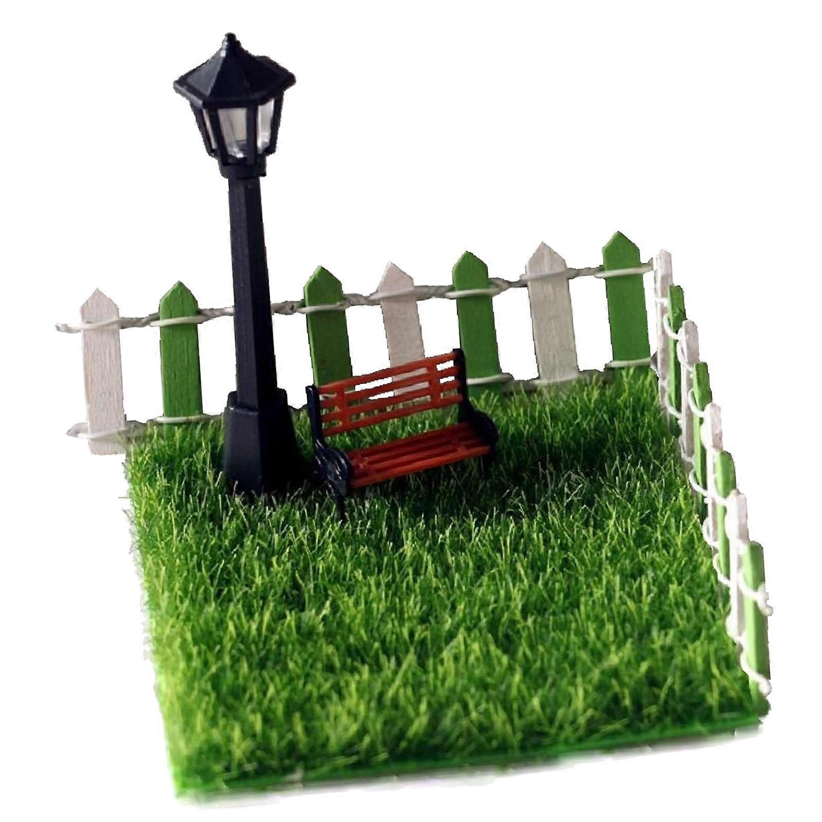 Description: 1/12 doll house miniature garden kits with exquisite workmanship and beautiful landscape. Delicate dollhouse accessory are made of quality PP and wooden, not easy to deform and durable. This lovely furniture set improves children's imaginative thinking and hands-on ability. Suitable for dollhouse decoration, miniature garden decorations, landscape ornament, etc. Perfect for 1:12 sacle dollhouses miniatures scenes, and 1:6 dolls life sences. Specification: Material: PP and Wooden Green Lawn Size:9cm/3.54inch Garden Bench Size:28x20mm/1.10x0.79inch Fence Size:100x30mm/3.94x1.18inch Package Includes: 1 Piece Lawn 1 Piece Bench 1 Piece Stree Light 4 Pieces Fence(Random Shipment) Note: This product is only a toy model. Non-children's toys, please pay attention to avoid children eating or accidental injury.