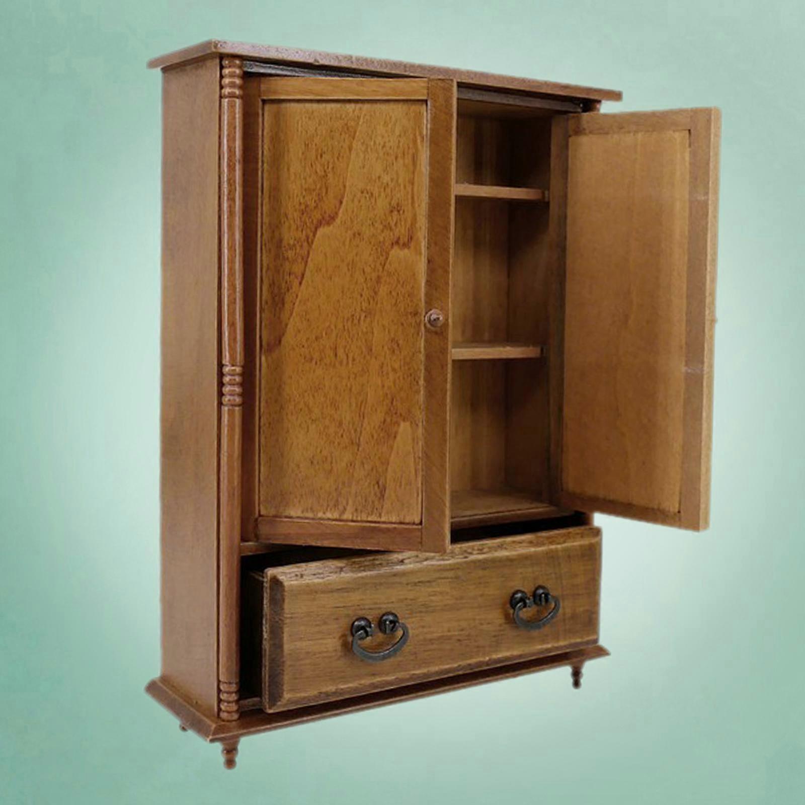 1:12 Scale Vintage Wooden Wardrobe Dolls House Miniature Accessory