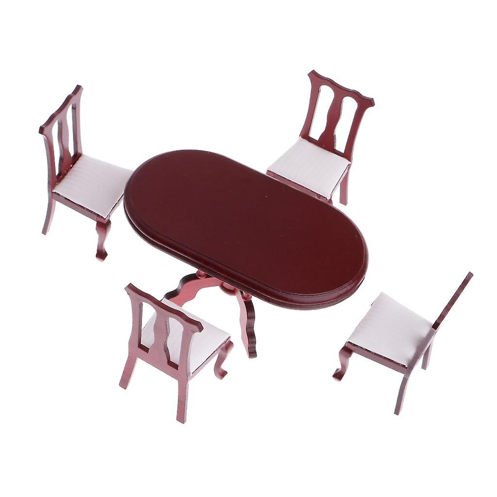 1/12 Scale Dollhouse Dining Room Furniture Dining Table with 4 Chairs Set