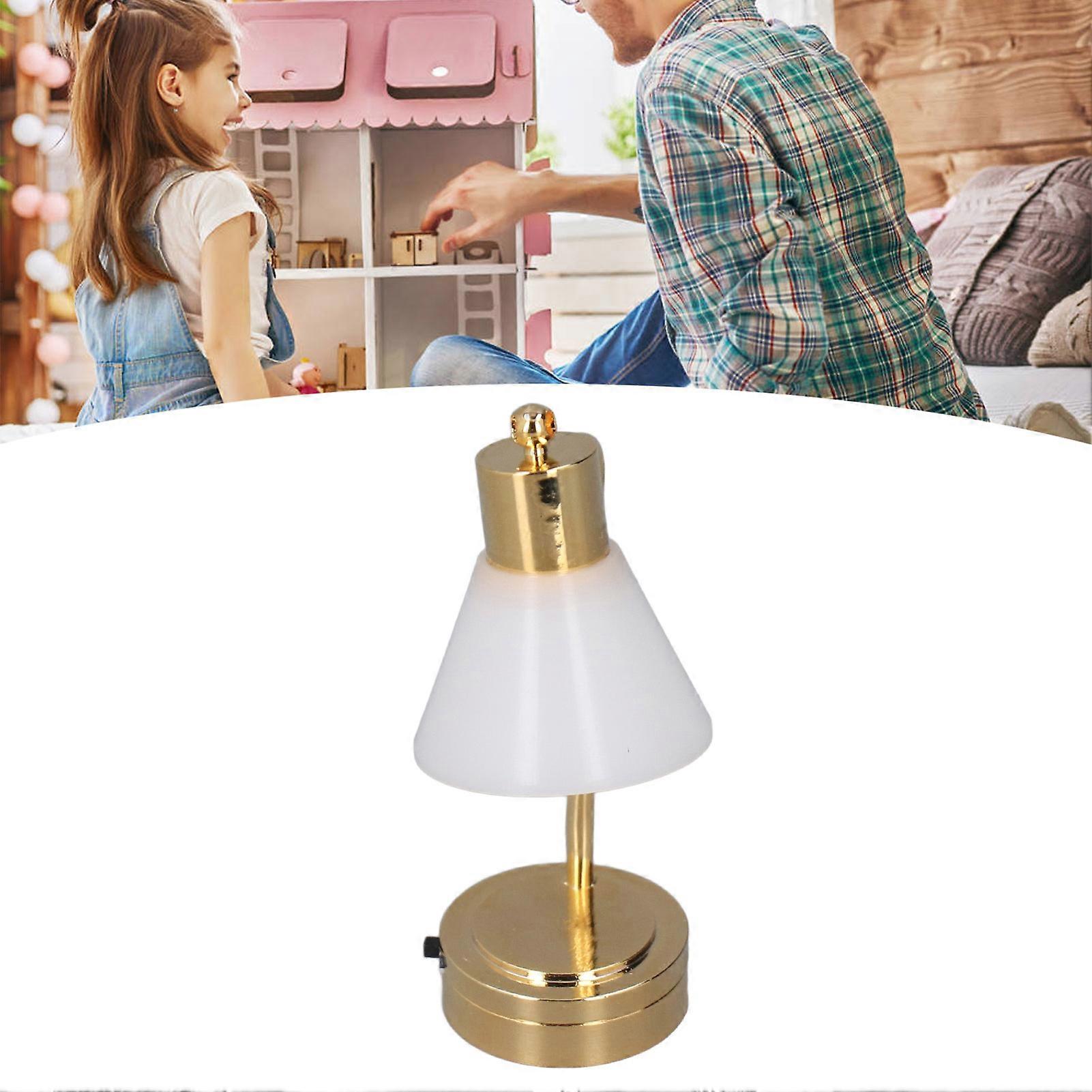 1:12 Scale Dollhouse Table Lamp LED Micro Metal Dollhouse Miniature Table Light Golden White