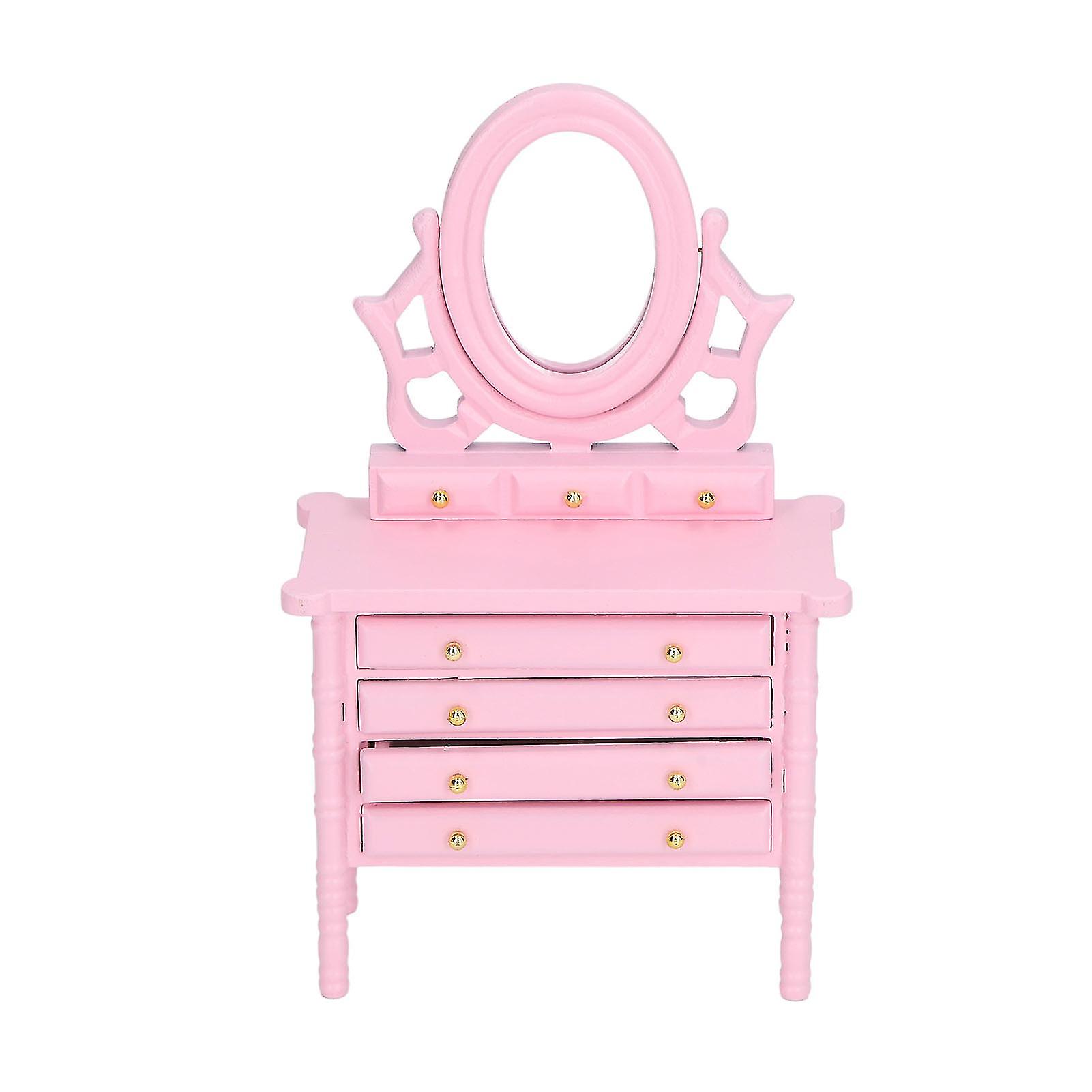 1:12 Scale Dollhouse Toilet Table High Simulation Wooden Miniature Dressing Table with Mirror