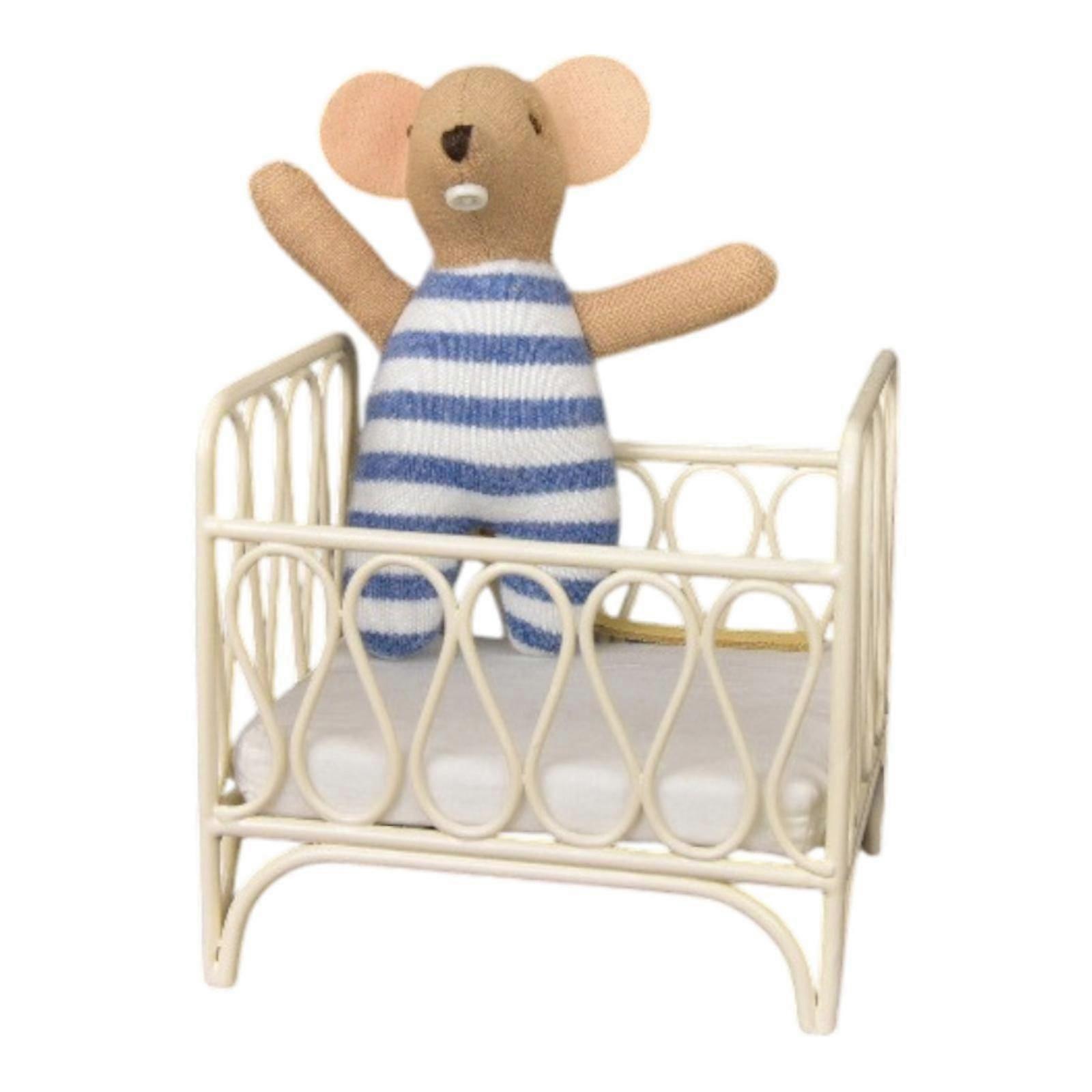 1:12 Scale Dollhouse Bed Tiny Crib for DIY Model Role Life Scene Layout blue Mouse Doll