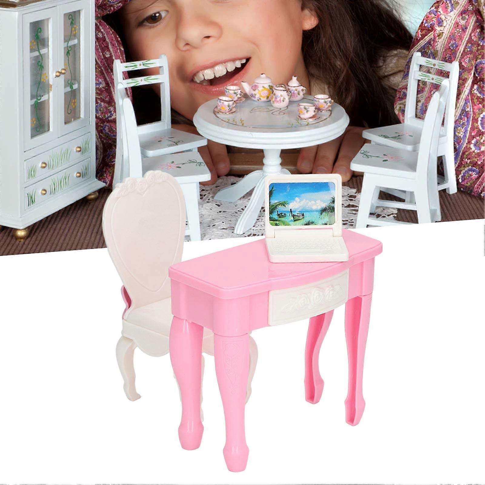 1:12 Scale Dollhouse Laptop Table Chair Furniture Mini Accessory Dollhouse Notebook Desk Chair Set