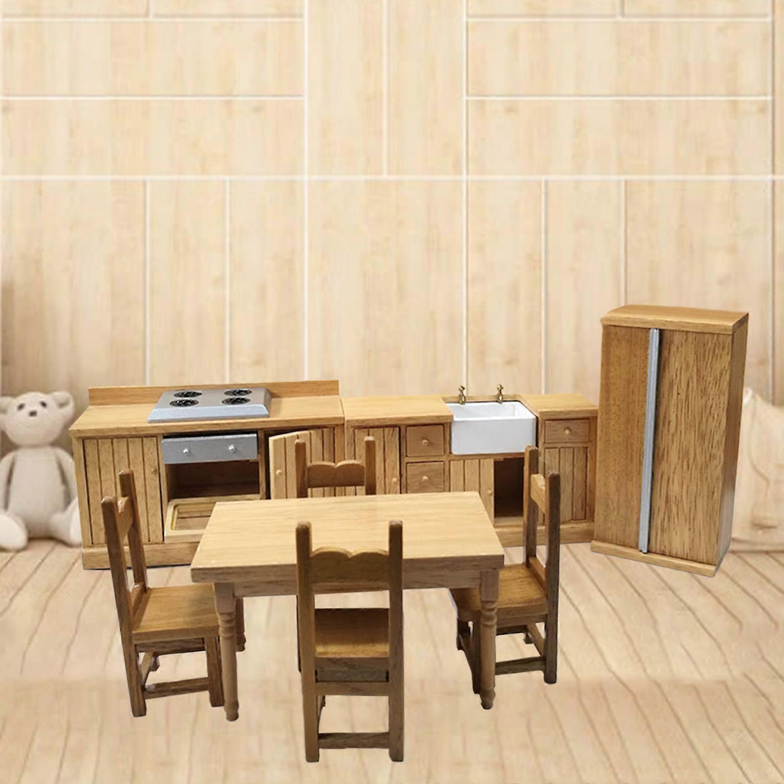 1/12 Scale Dollhouse Wooden Kitchen Furniture Dining Bjd Doll Decoration Model for Kids Gifts