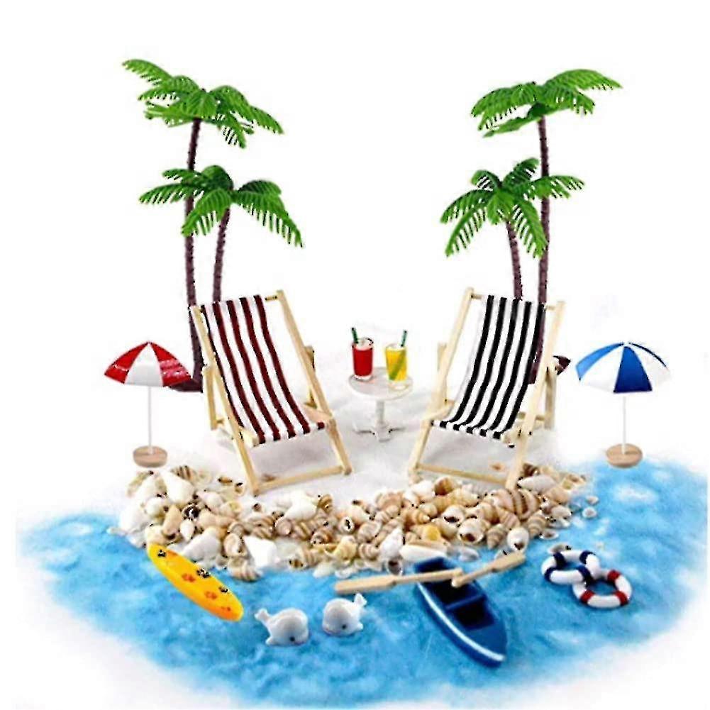 1/12 Doll House Accessories Miniature Beach Set Decoration Beach Micro Landscape With Deckchairs Parasols Palm Tree