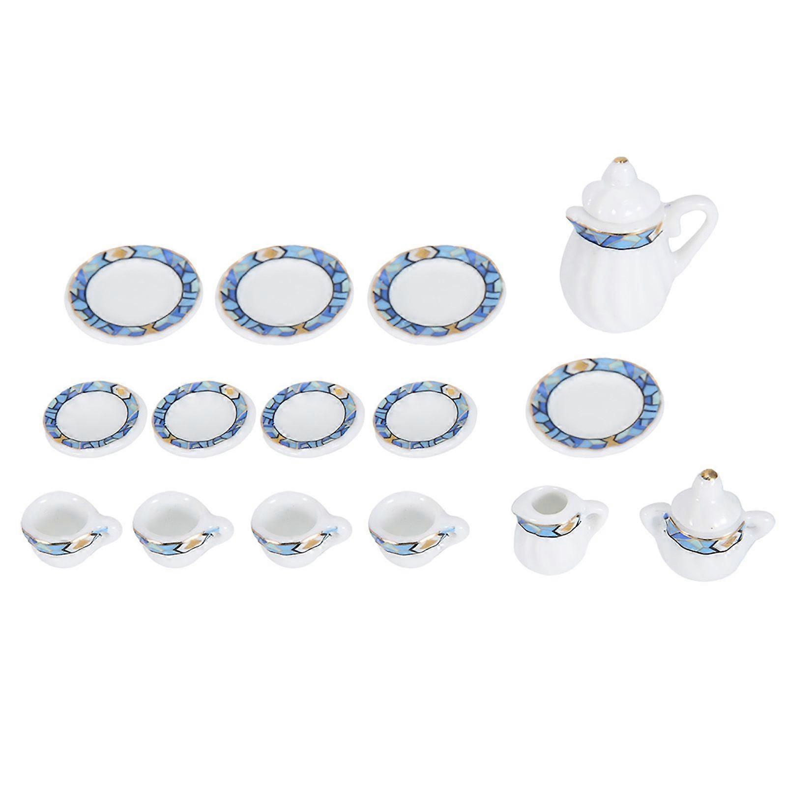 1:12 Dollhouse Kitchen Miniature 15pcs Porcelain Flower Tea Cup Set Decor Collection (#2)