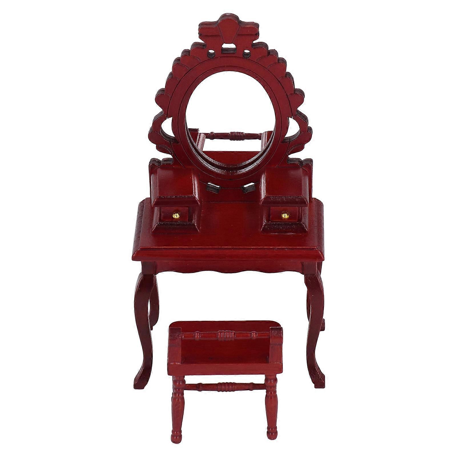 1:12 Dollhouse Dressing Table Stool Miniature Bedroom Furniture Model Decoration DIY Dollhouse Accessory Red