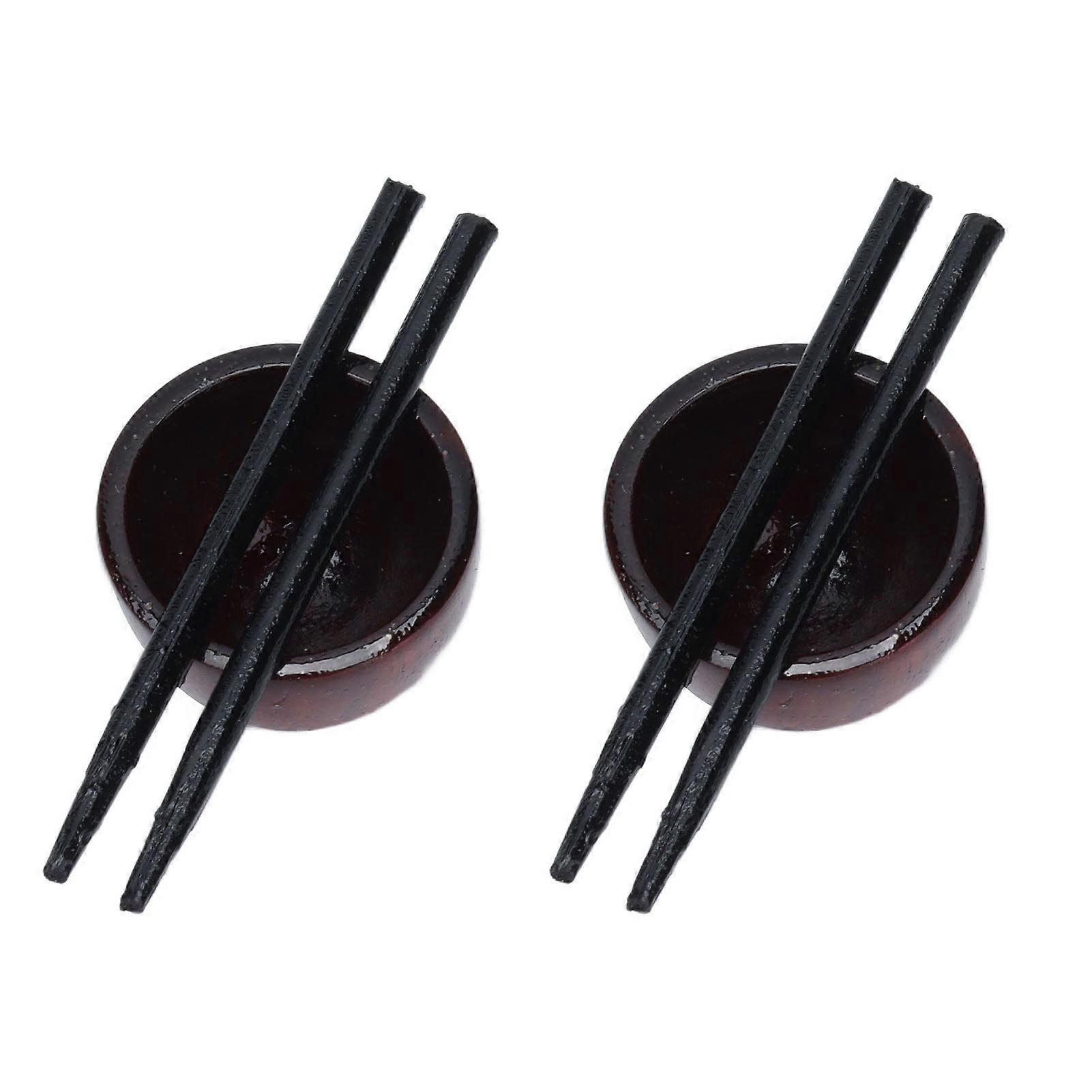 1:12 Dollhouse Bowl and Chopsticks Set Miniature Redwood Retro Doll House Tableware for Dollhouse Kitchen Dining Room