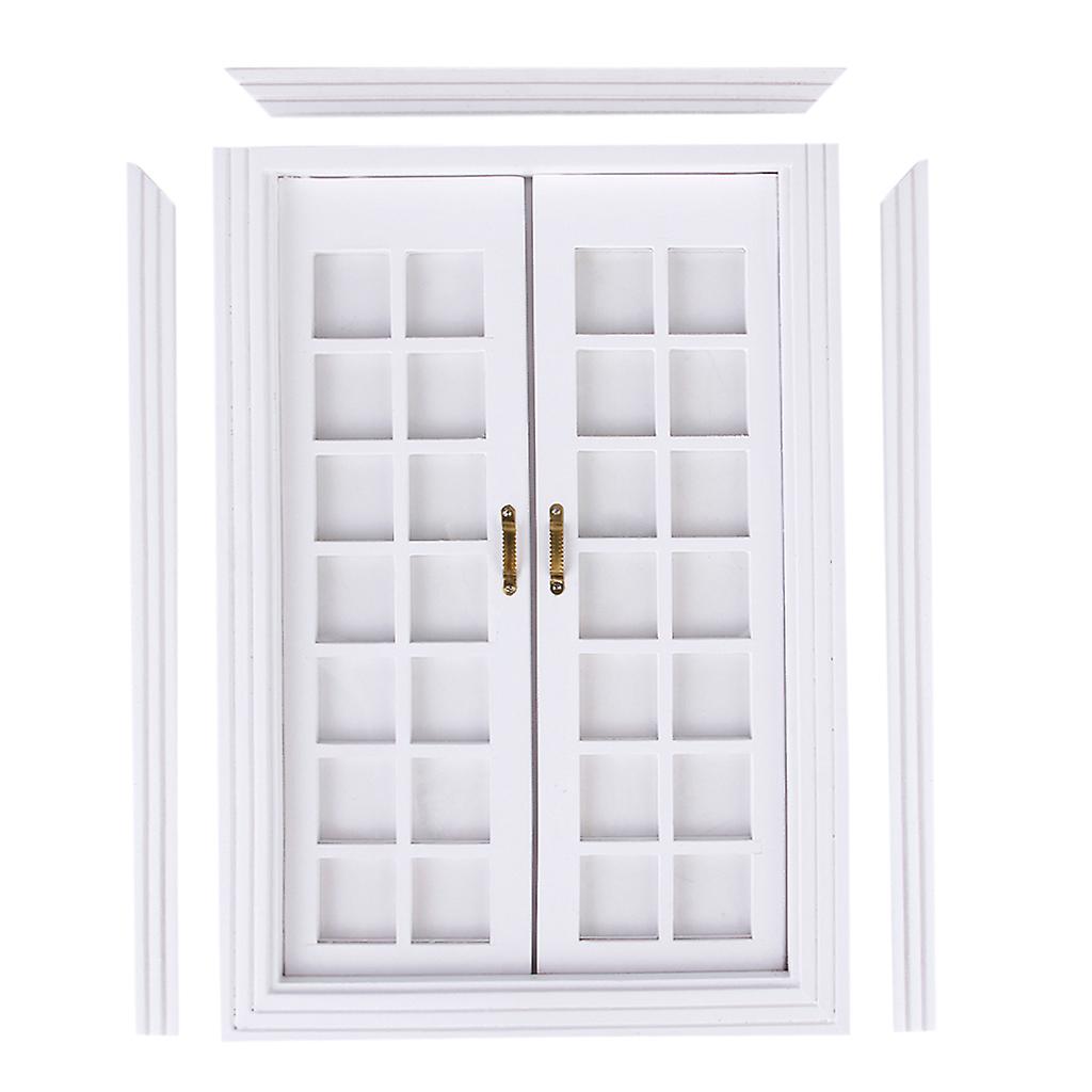 1/12 Dollhouse Miniature Exterior Wooden French Door - White